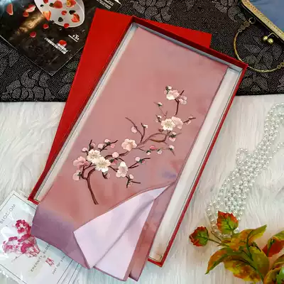 Suzhou silk embroidery handmade Suzhou silk scarf plum blossom long version of female silkworm silk scarf classical specialty accompanied by hand gift