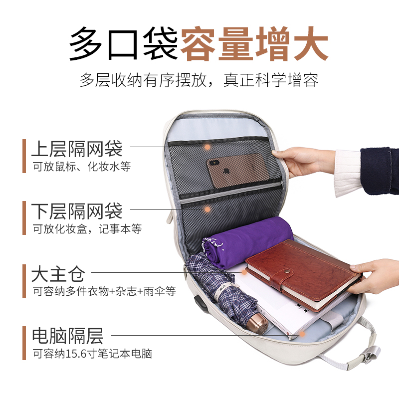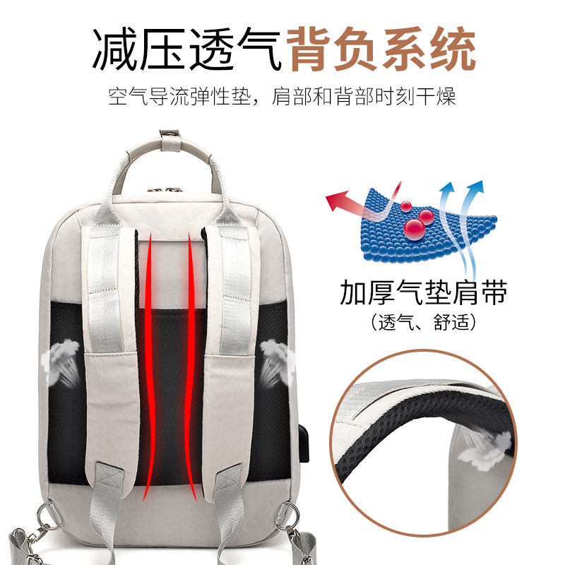 Reflective double shoulder bag black (independent computer barrier) minimalist version-rice white grey charging shoulder bag (no shockproof air cushion no charging jack) Minimalist version-Black charging bag with no shockproof air cushion