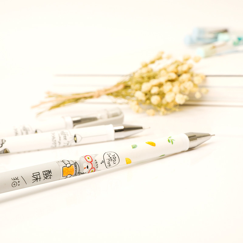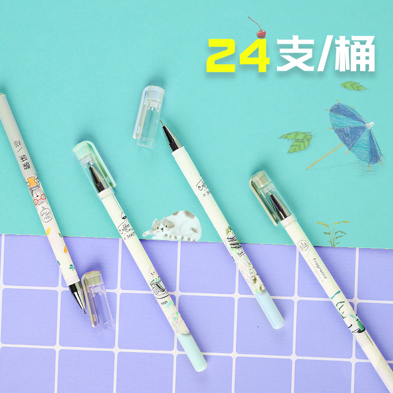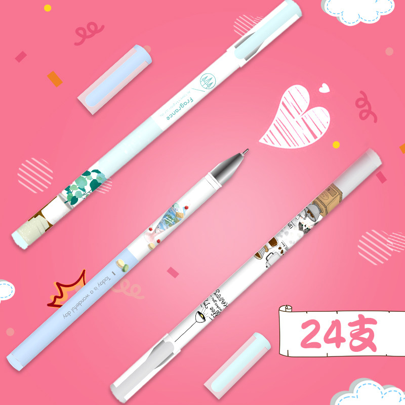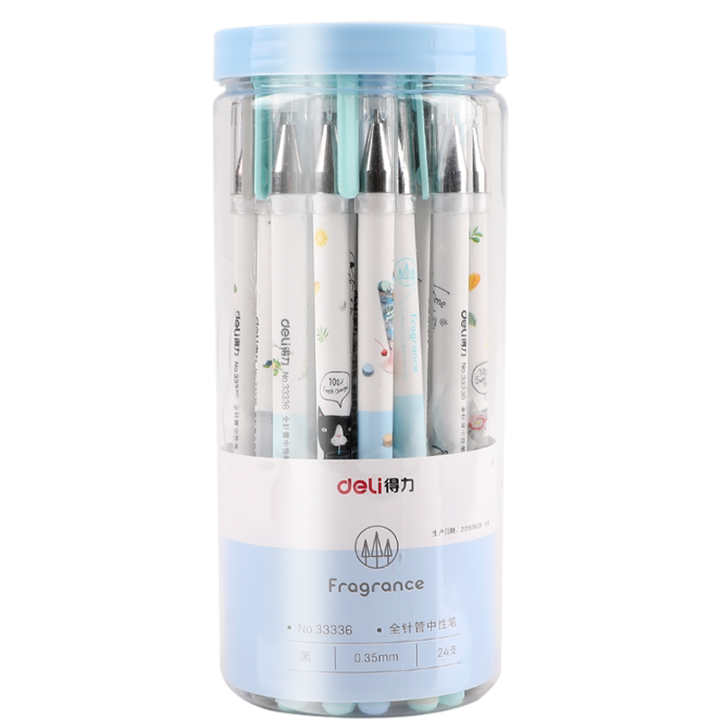 Deli Stationery gel pen students with black pull-out hipster cute cartoon signature pen water gel pen 0 35MM full needle tube water pen barrel 24 writing tools