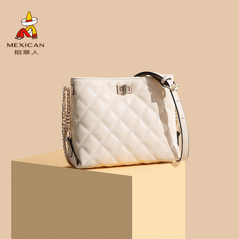 Rice straw man bag woman 2022 spring summer new 100 lap single shoulder small fragrant wind chain bag small crowdsourced satchel bucket bag