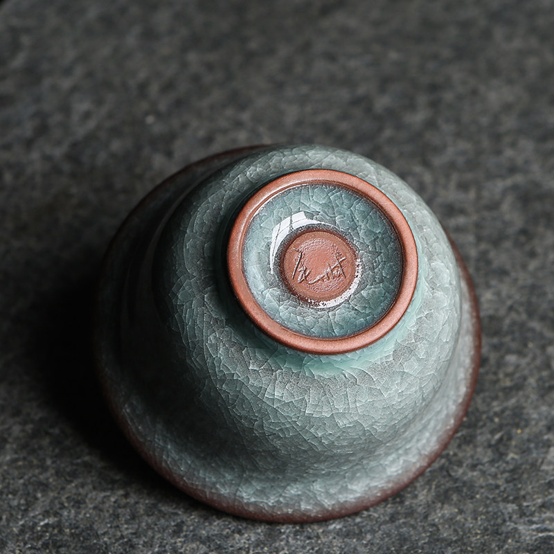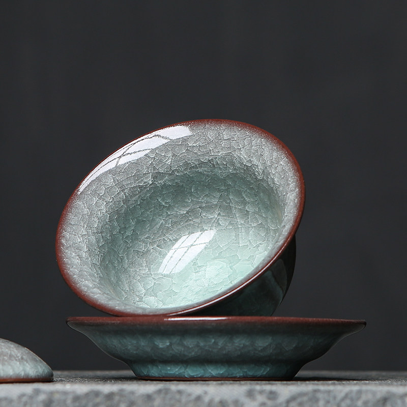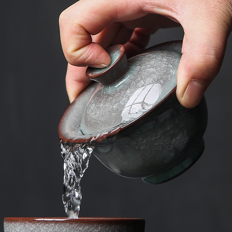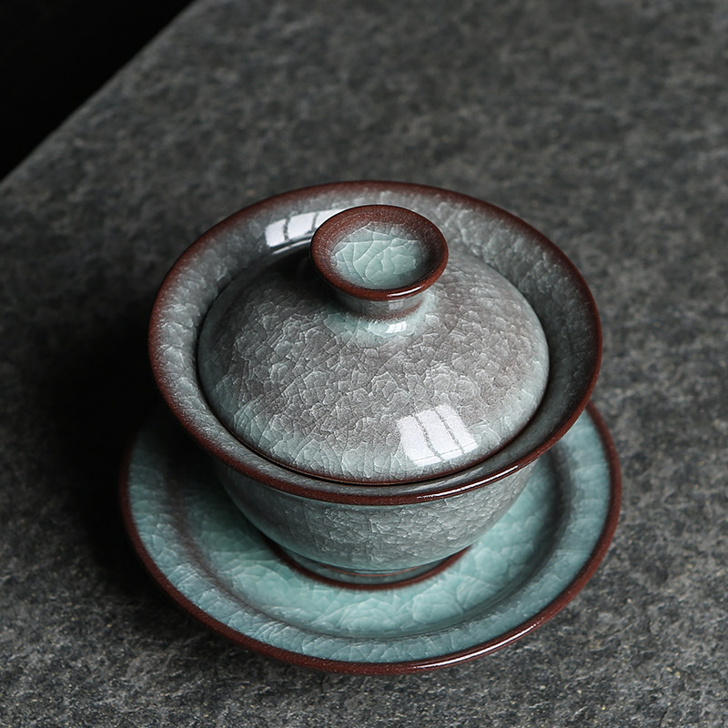 Celadon Three Cai Bowl Tea Cup Large Single Tea Bowl Not Hot Longquan Go Kiln Ice Cracking Kung Fu Tea set