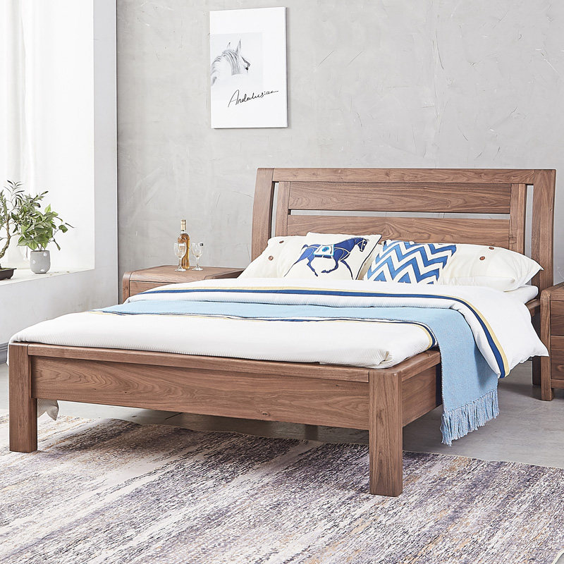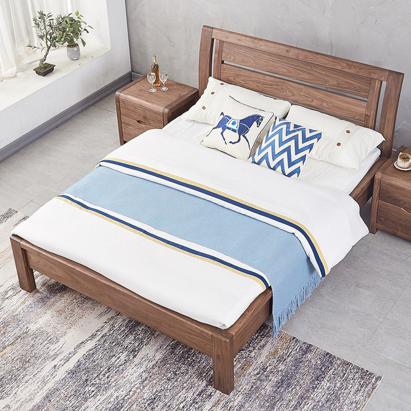 Zolpirim Black Walnuts Solid Wood Bed Elevated Sub Bed New Chinese Style 1 5 m 1 8 Solid Wood Bed Double Bed Master Bedroom