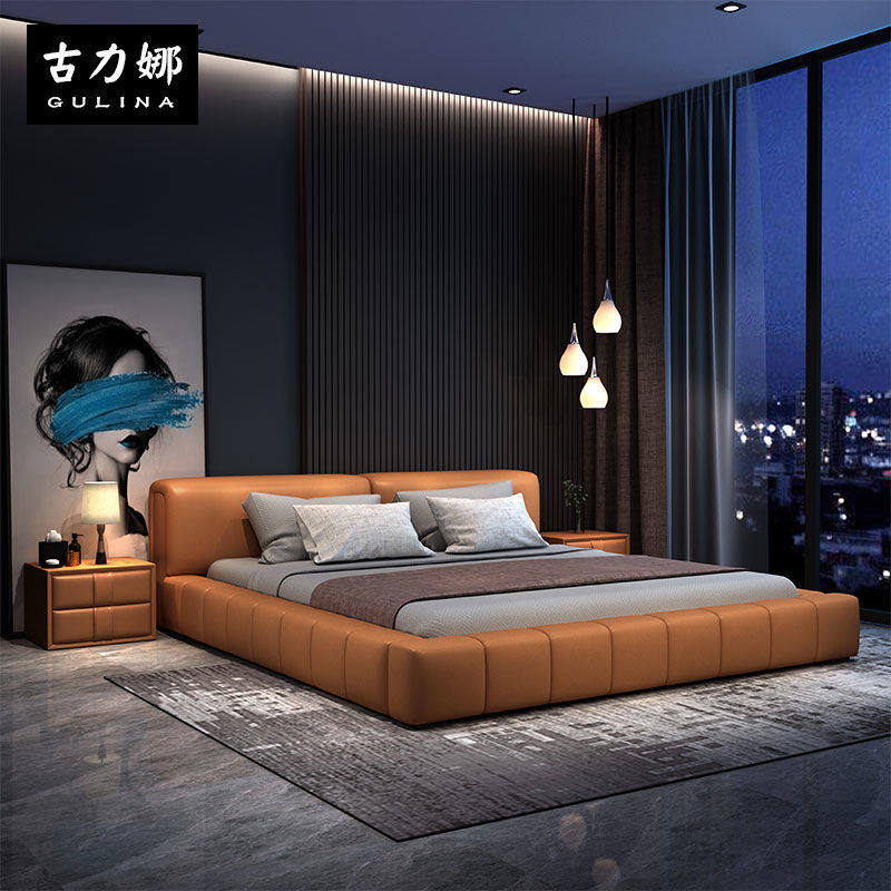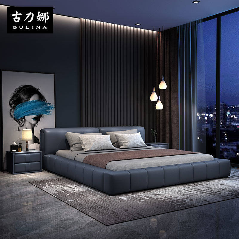 2022 new net red minimalist leather bed black light luxury modern minimalist baxter tofu block tatami wedding bed