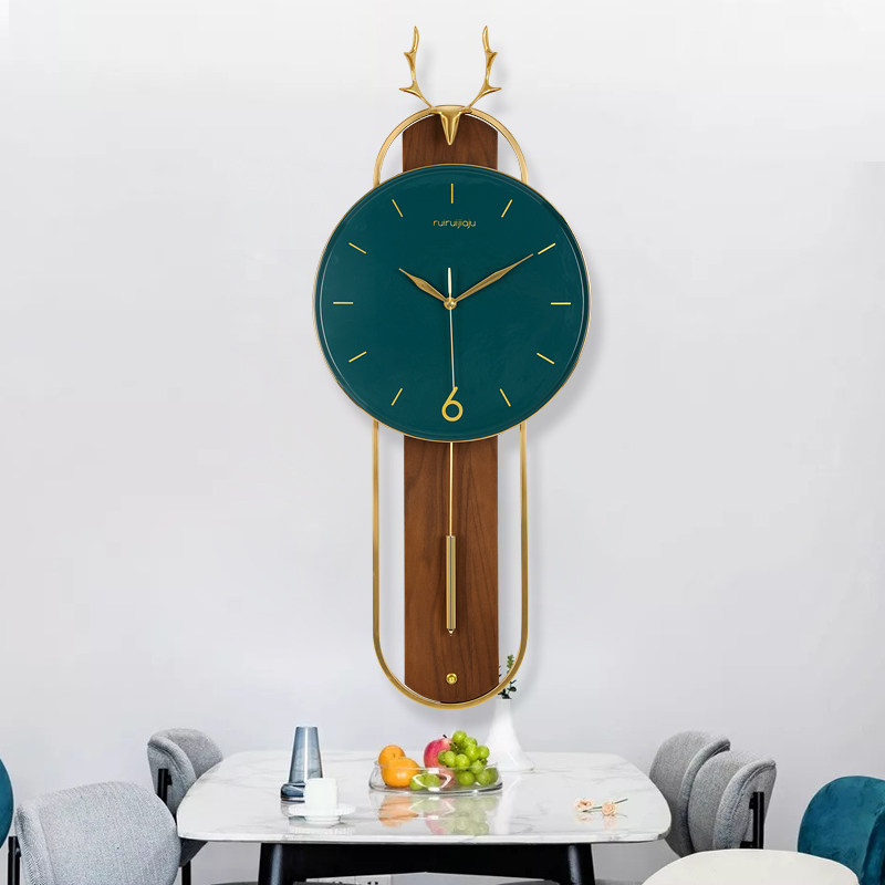 Nordic deer head ceramic clock wall clock Home living room European light luxury hanging watch fashion decoration clock atmospheric wall hanging