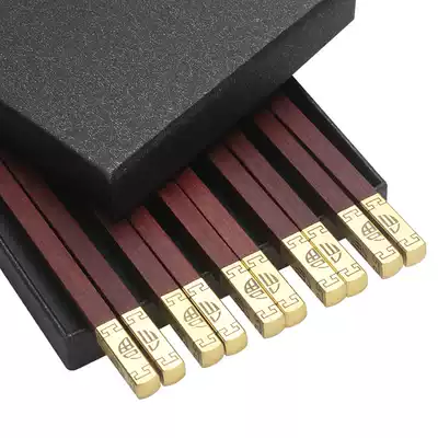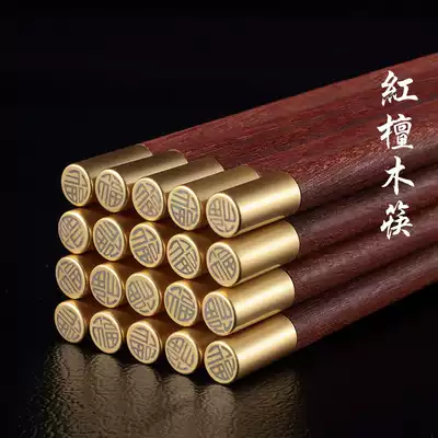 Red sandalwood chopsticks Household natural logs mildew-proof chopsticks Commercial chopsticks Paint-free and wax-free Chinese blessing square head chopsticks 10 pairs
