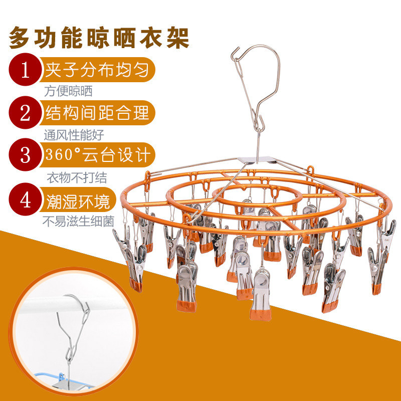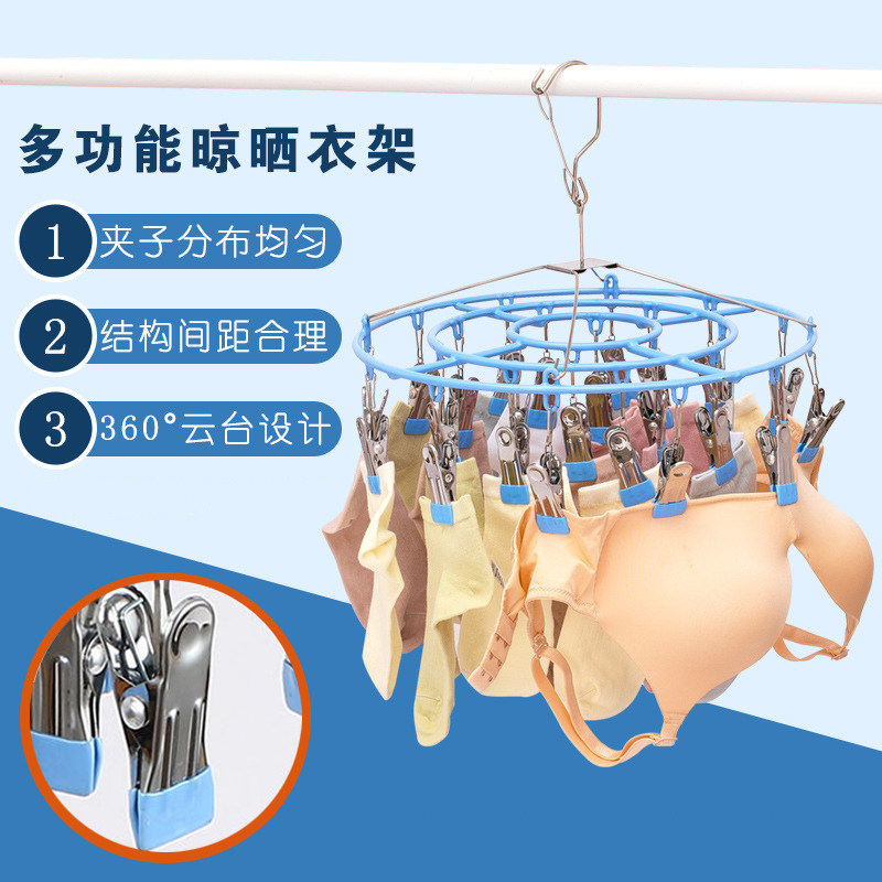 Stainless steel drying rack Multifunctional sock clip hook drying rack Household baby cool underwear clip drying artifact