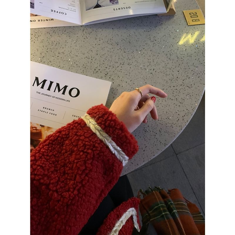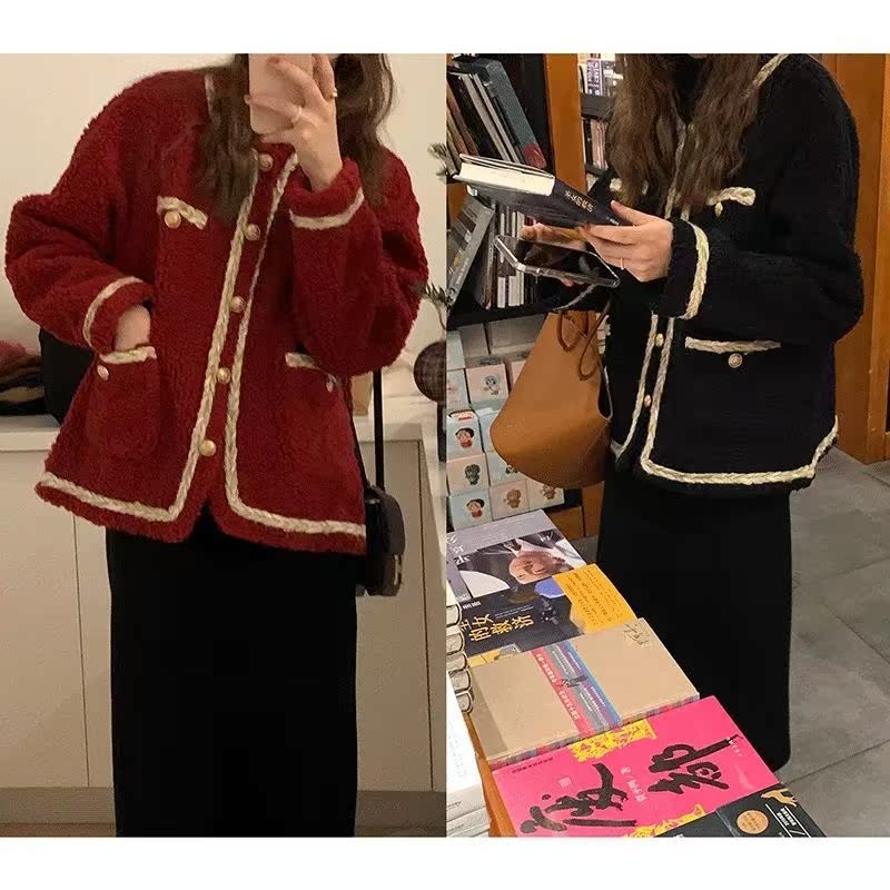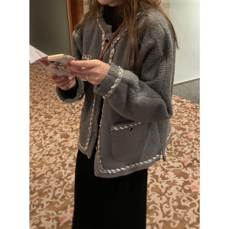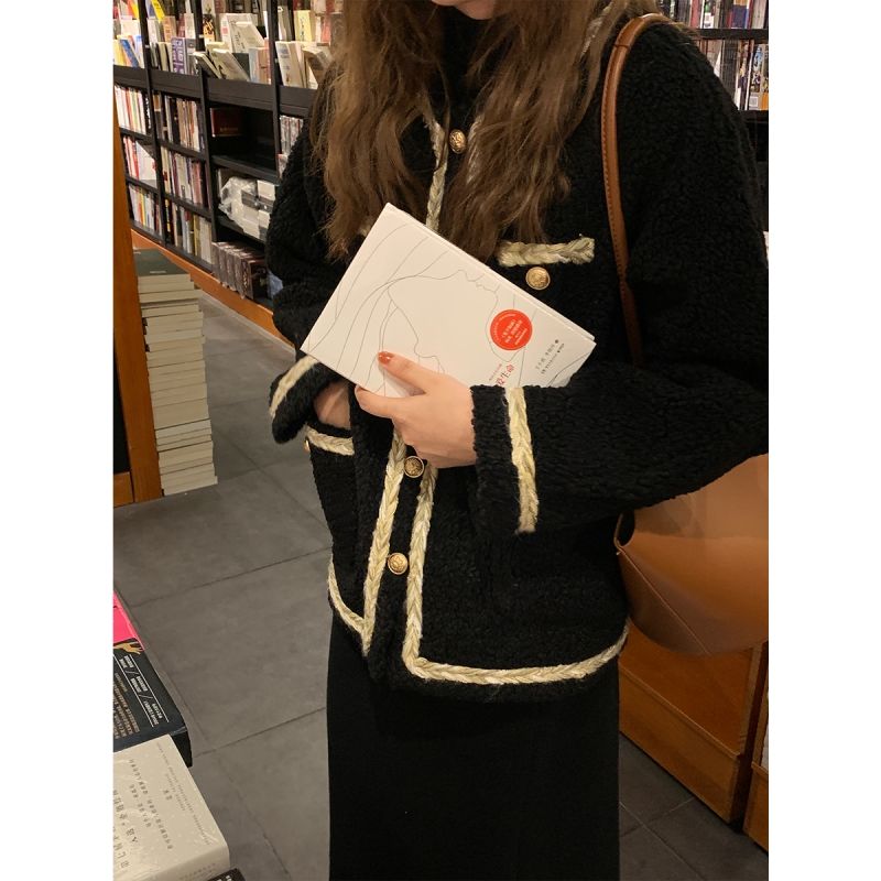 Small Aromas Webbing Webbing Lamb Wool Coats Women Ins Tide Autumn Winter New Korean Version Loose Retro Port Taste Foreign Cotton Clothes