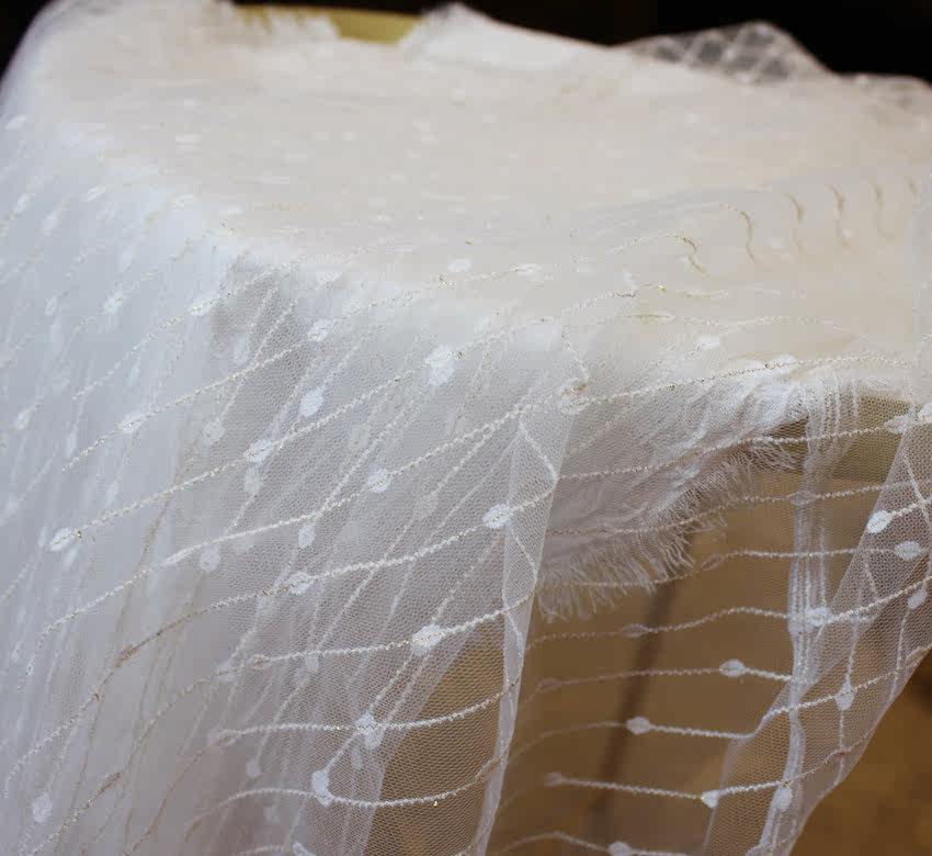 White gold lace striped embroidery mesh photo background clothing fabric mesh dress fabric