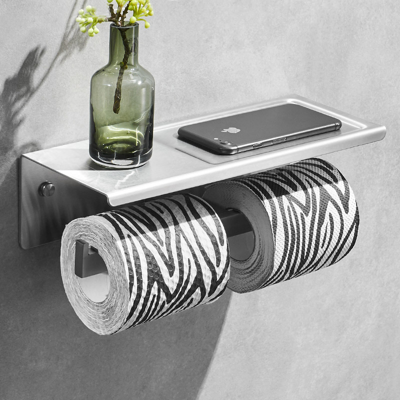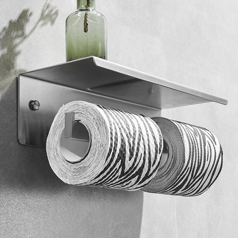 Toilet double tissue rack roll toilet paper 304 stainless steel for mobile phone storage toilet paper holder non-perforated dressing room tissue holder