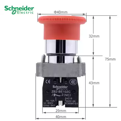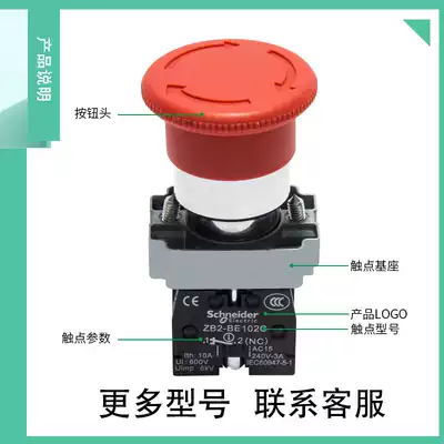 Schneider emergency stop switch XB2BS542C mushroom head button self-locking ZB2-BE102C normally closed emergency stop
