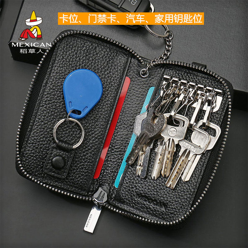Rice Straw Man Key Bag Men Genuine Leather Bracelet Car Key Leather Jacket Cow Leather Multifunction Waist Hanging Door Fasting Bag