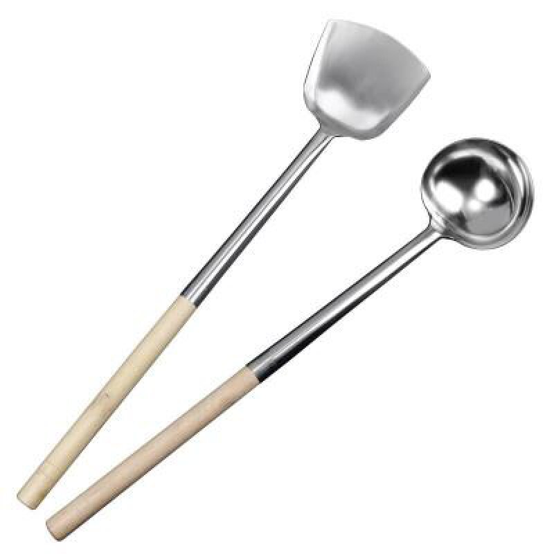 Full stainless steel mirror pan shovel 1 No magnetic incomplete stainless steel mirror fired spoon 12 Two non-magnetic thickened sub-light wood handle frying spoon 10 Two non-magnetic all stainless steel mirror pan shovel 3 No magnetic small number 71cm Long no