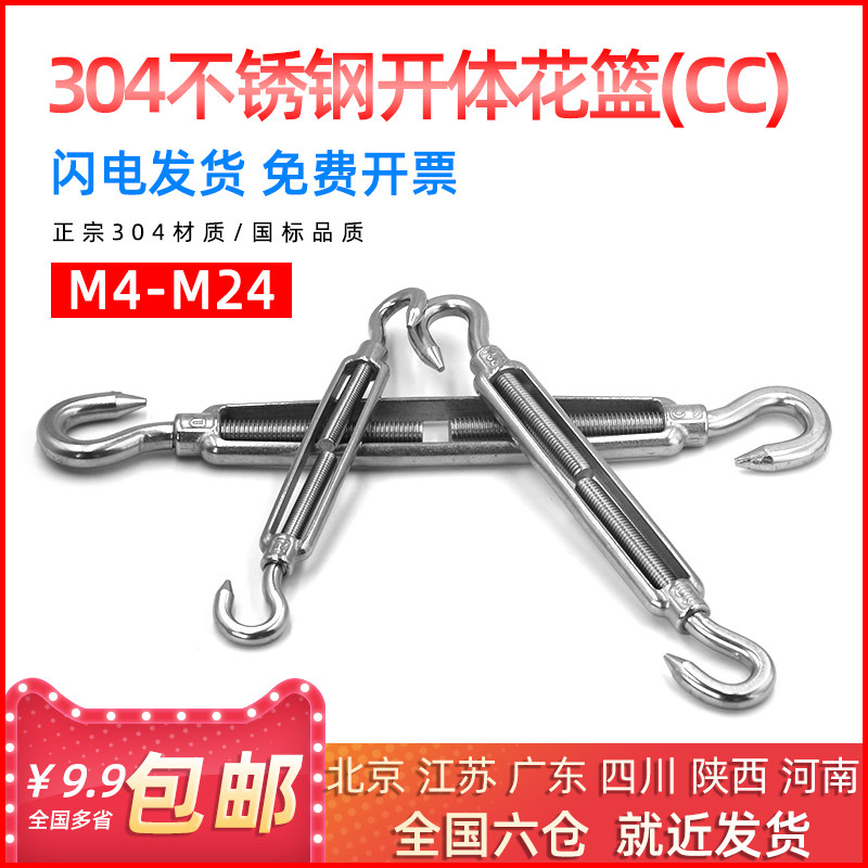 304 stainless steel open body flower basket screw bolt steel wire rope tensioner tight rope spiral rigging hook hook CCM4-24