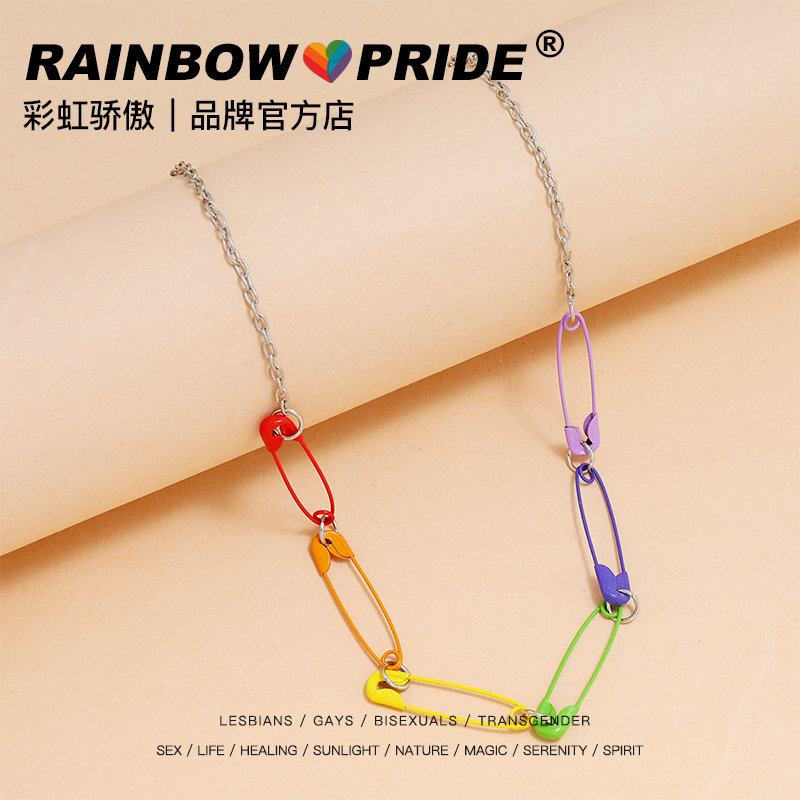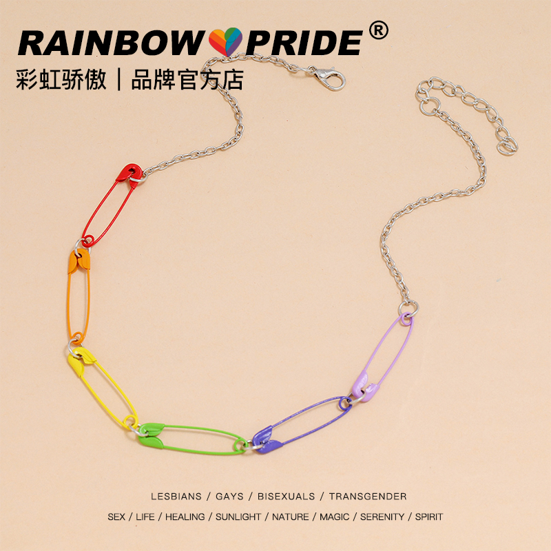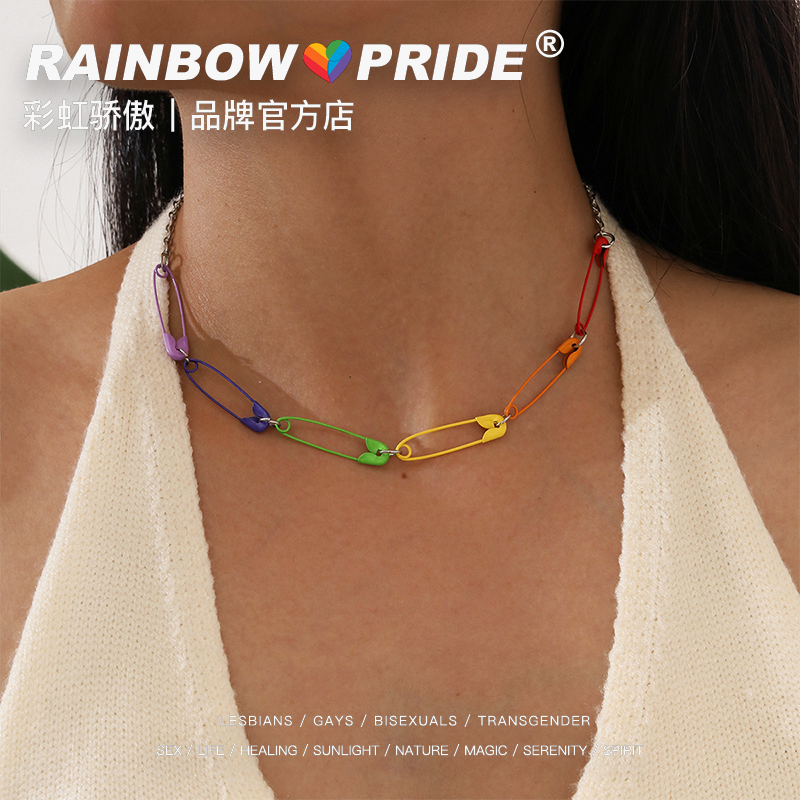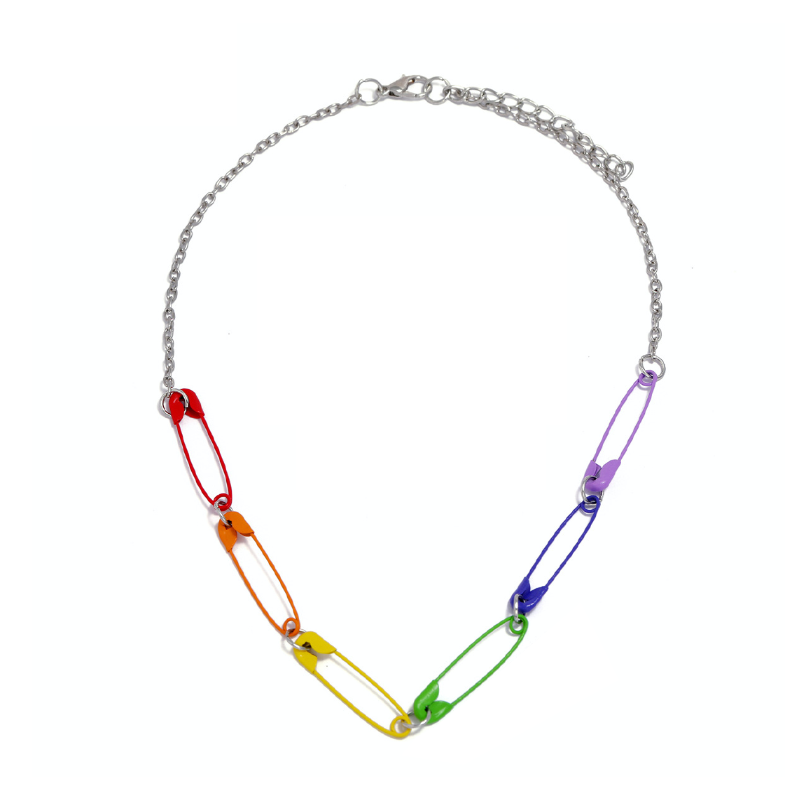 RainbowPride Rainbow Six Color Colorful Buttoned Needle Necklace Fashion Personality Necklace LGBTQ Ornament