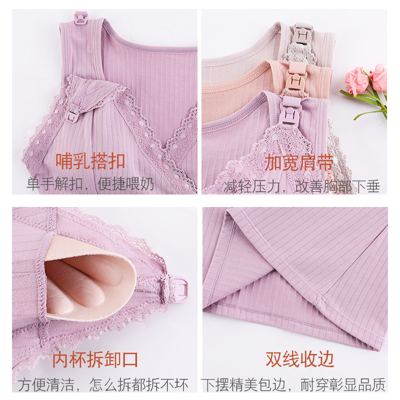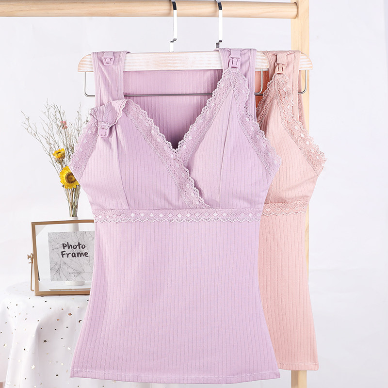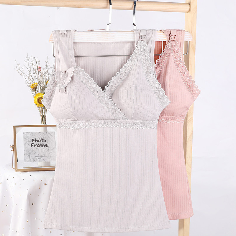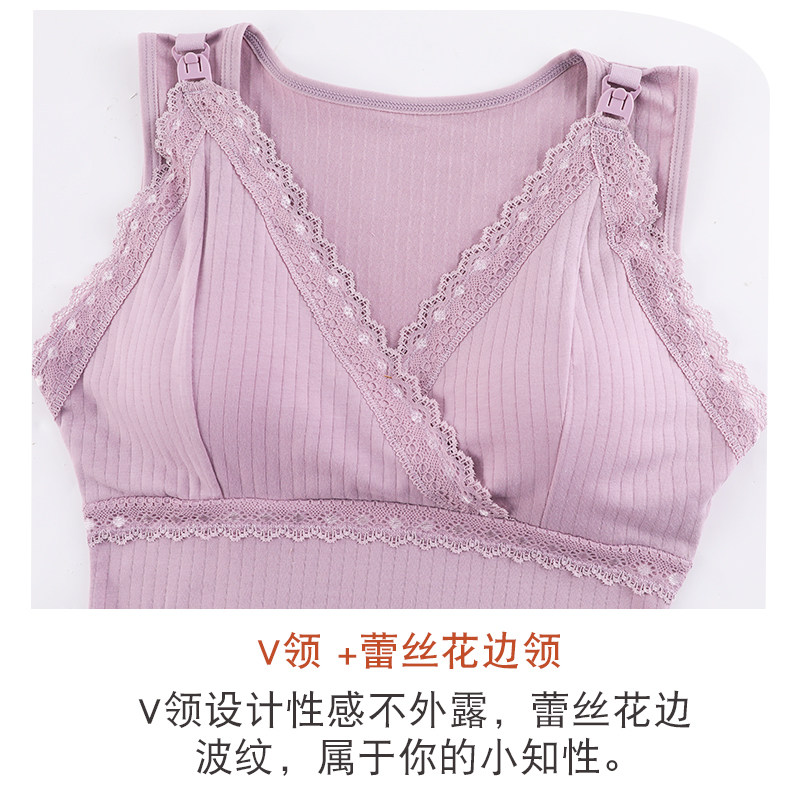 2 Dress Lactation Vest Woman Postnatal Fall Pure Cotton Laced Dress Free Wear Underwear Bottom Lactation Period Harness Large Size