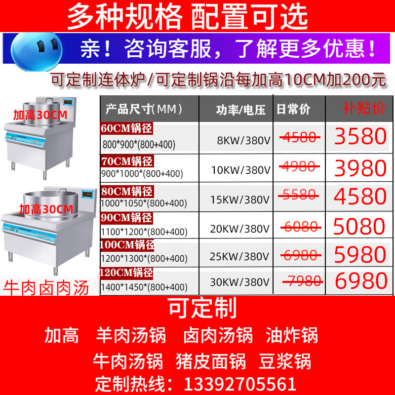 Commercial induction cooker 15kw30kw high-power concave beef soup stove canteen large pot stove commercial mutton soup boiler