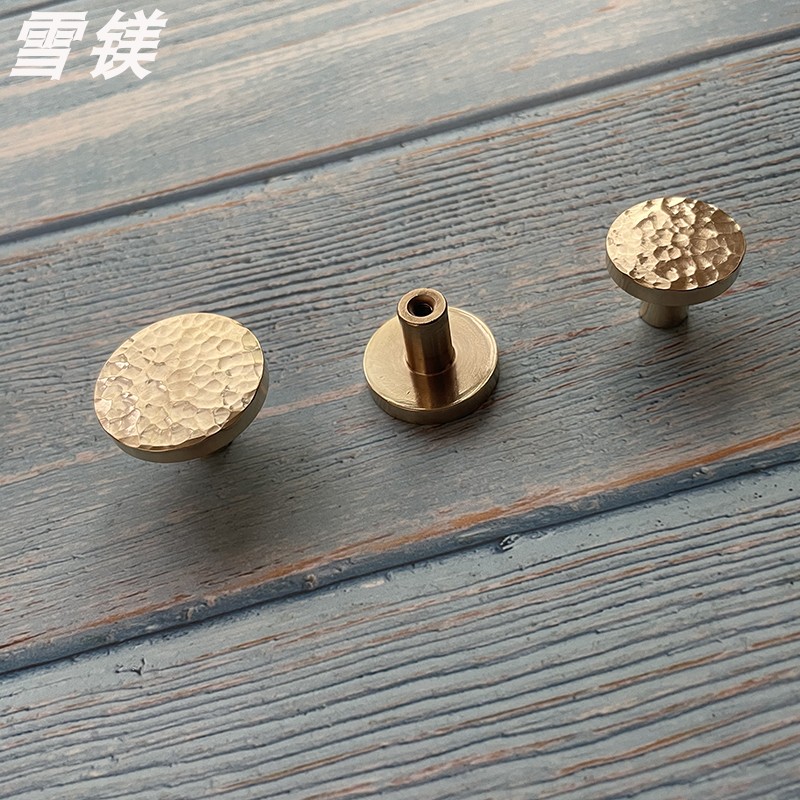 Quality pure handmade hammer stripe brass Chinese style minimalist drawers wardrobe door handle bookcase handle overall cabinet Single-hole round