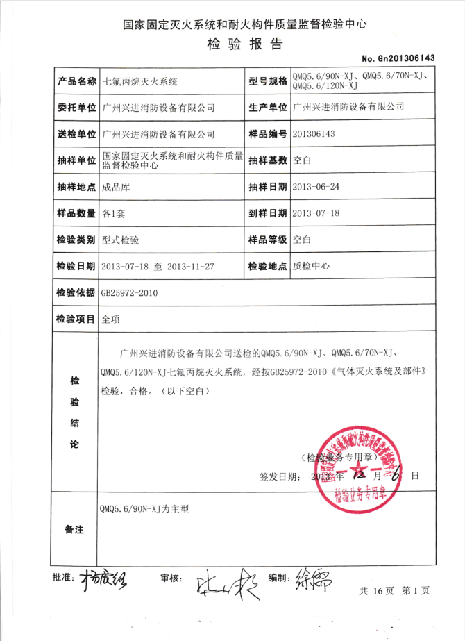 Seven-fluorine propane pipe network type gas extinguishing system equipment device QMQ5 6 120N-XJ (5 6MPa)