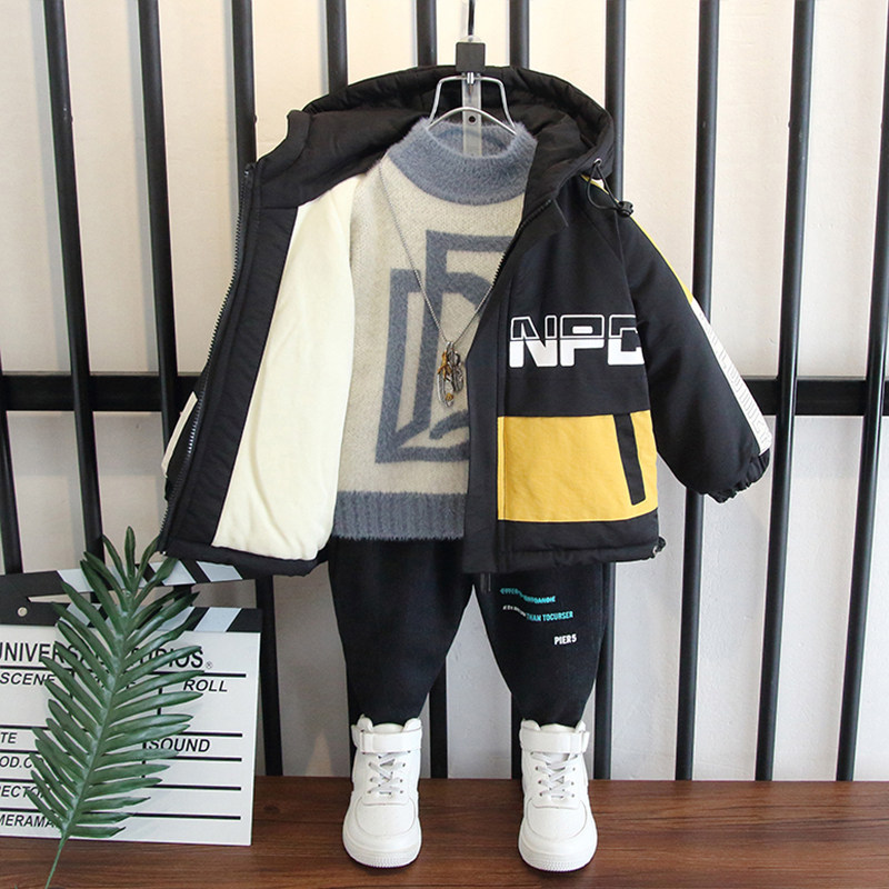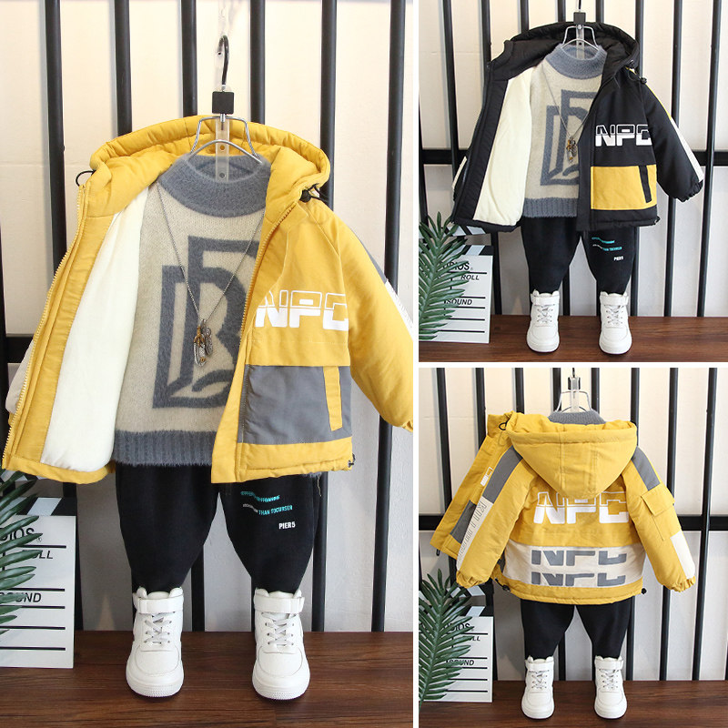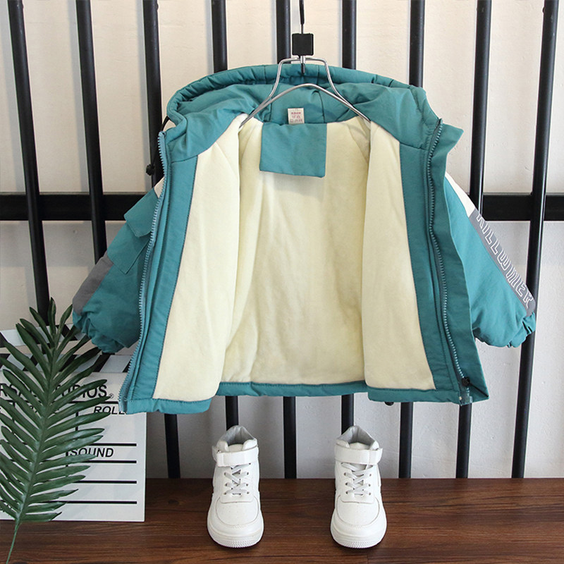 Hong Kong children's clothing boy coat winter 2021 New Korean version of foreign style children Winter plus velvet padded coat top