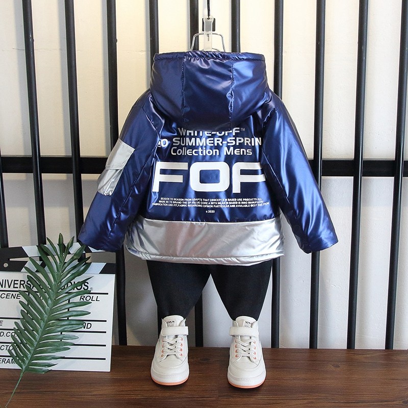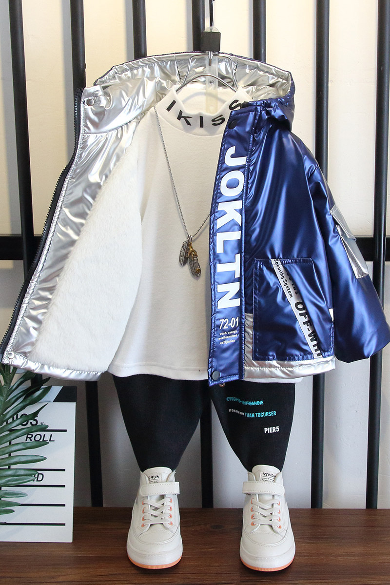 Hong Kong boys cotton-padded clothes 2021 new fashion foreign school children's winter dress thickened velvet padded puck padded