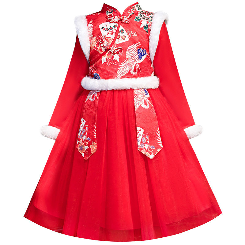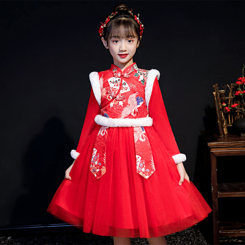 China Wind Girls Winter Tang Dress Thickened for New Year's New Year Children's clothes Red Heqing Upper class Children's Han uniforms