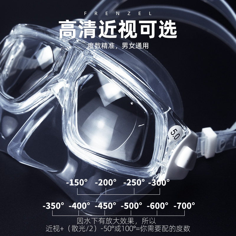 Frenzel flange left myopia free diving surface mirror ultra - light large diving sample soft silicone transparent mermaid