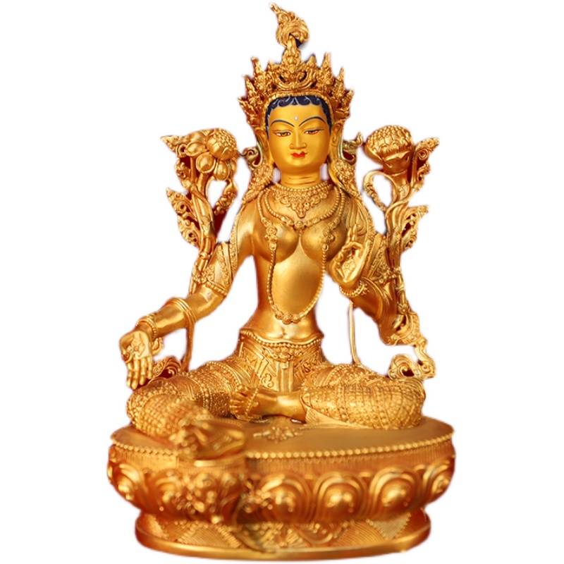 Green Tara pure copper Seiko painted Buddha statue home enshrined 7 inches 1 foot Tibetan tantric home Guanyin Buddha statue ornament