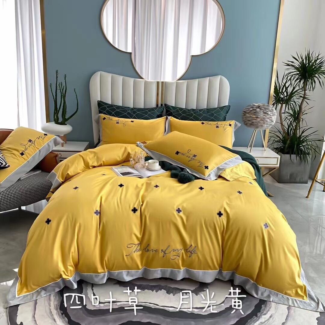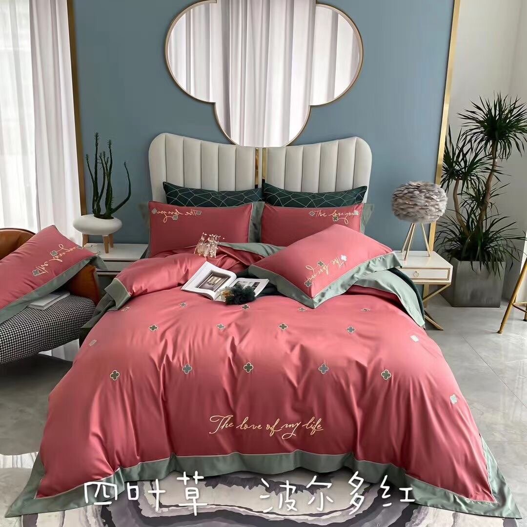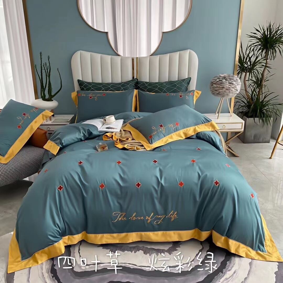 Light and luxurious 100 mil full cotton embroidered four pieces hand feel fine and soft long suede cotton quilts enlarge number