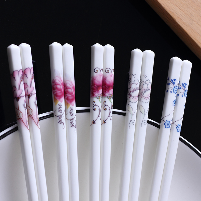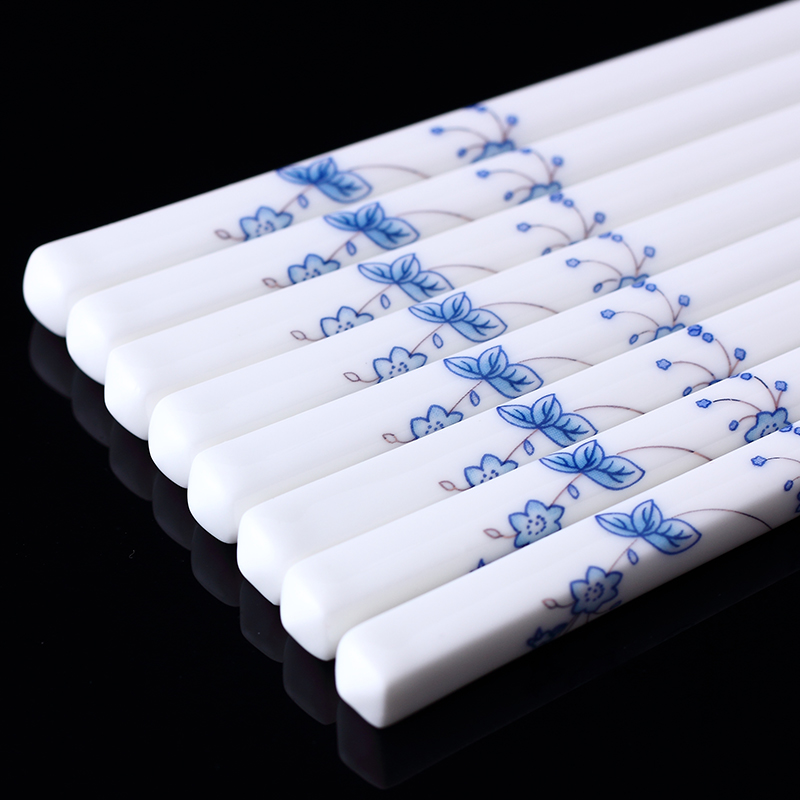 10 Double ceramic chopsticks Home One chopsticks Chopsticks Public Chopsticks Porcelain Quick Sub anti-slip lovers A pair of bone porcelain families distinguish chopsticks