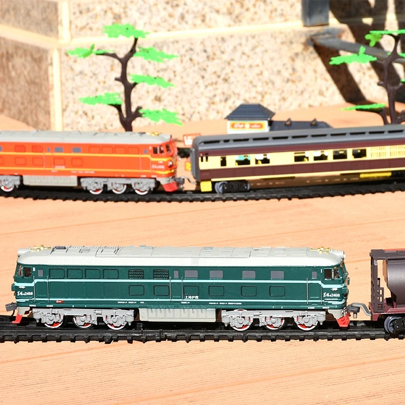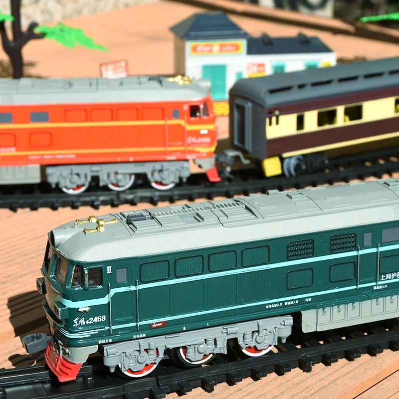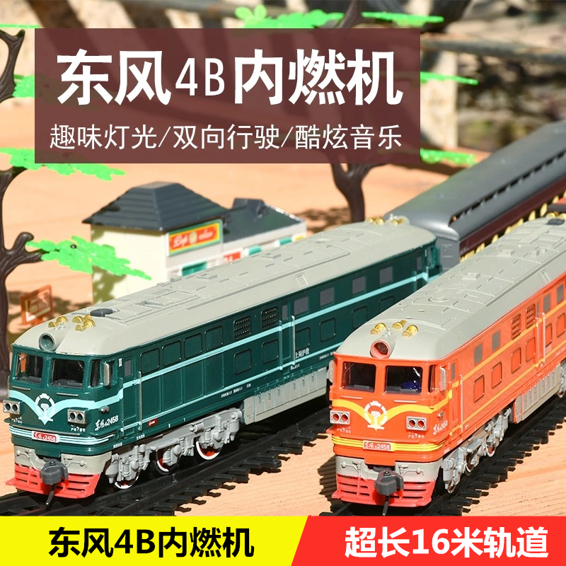 Children's toy green leather train Dongfeng 4B internal combustion engine train car simulation electric rail car model high speed rail boy