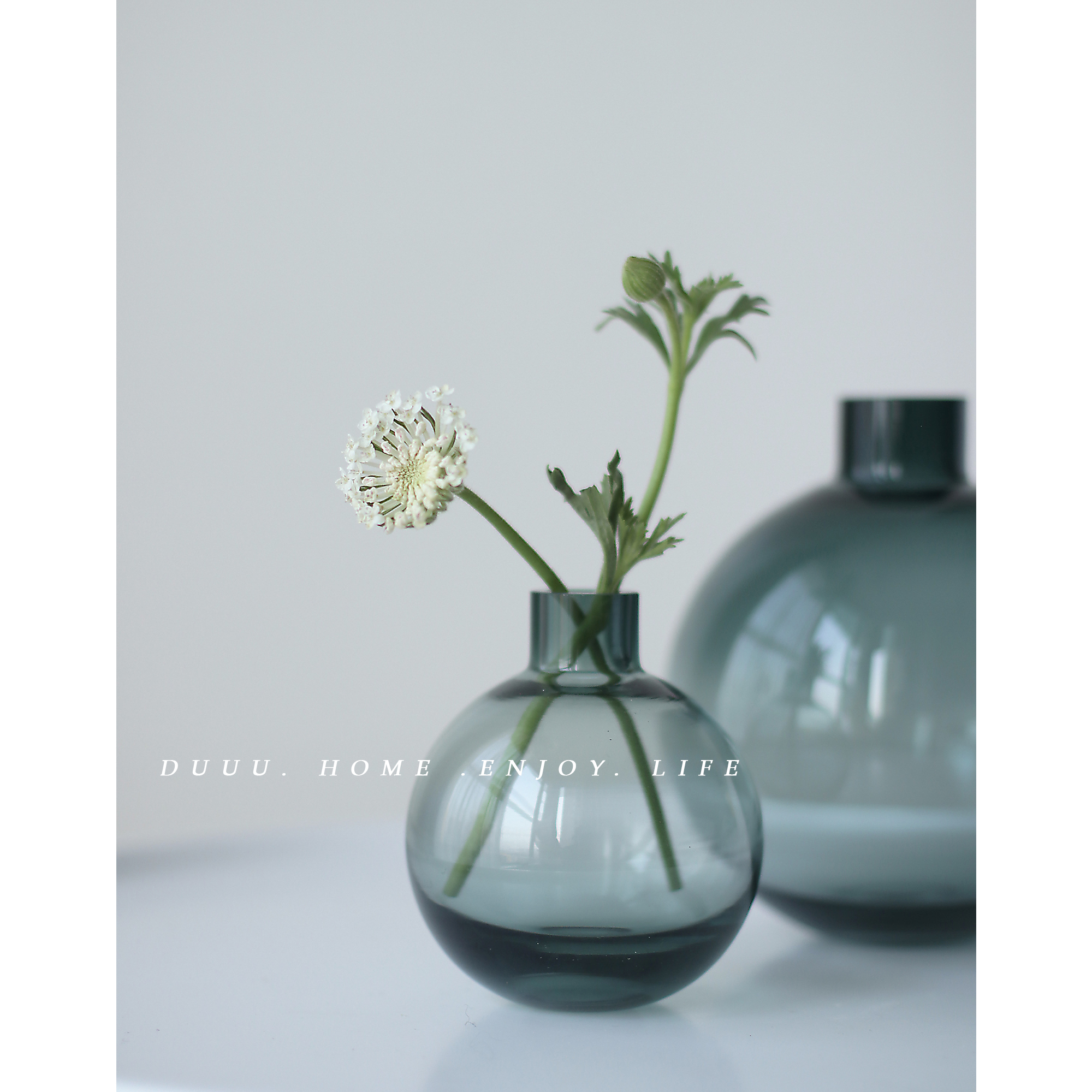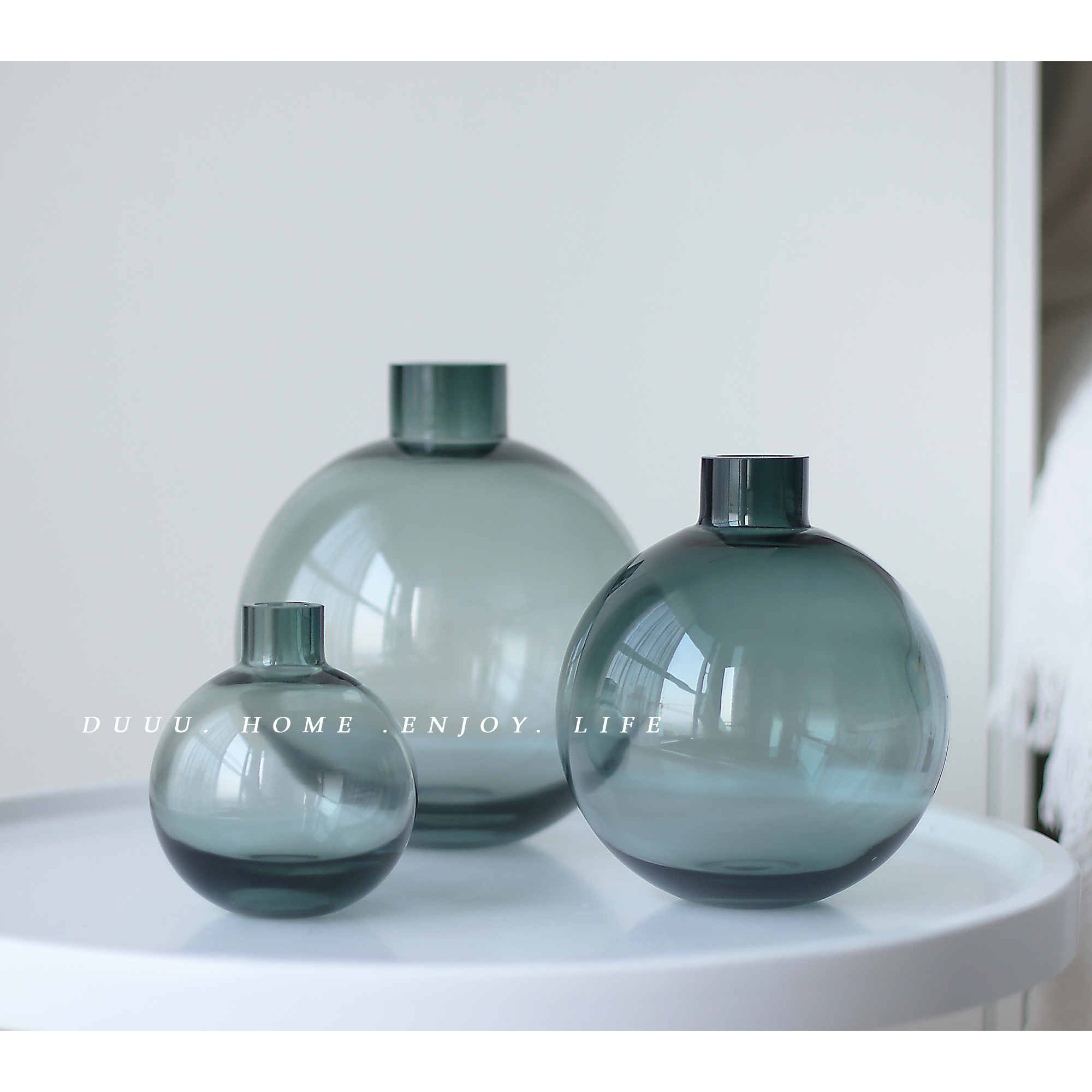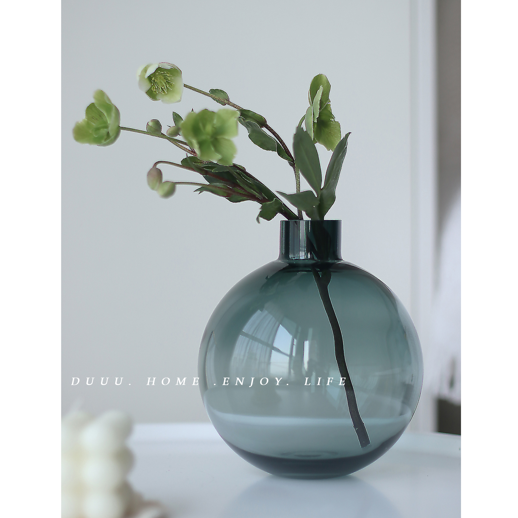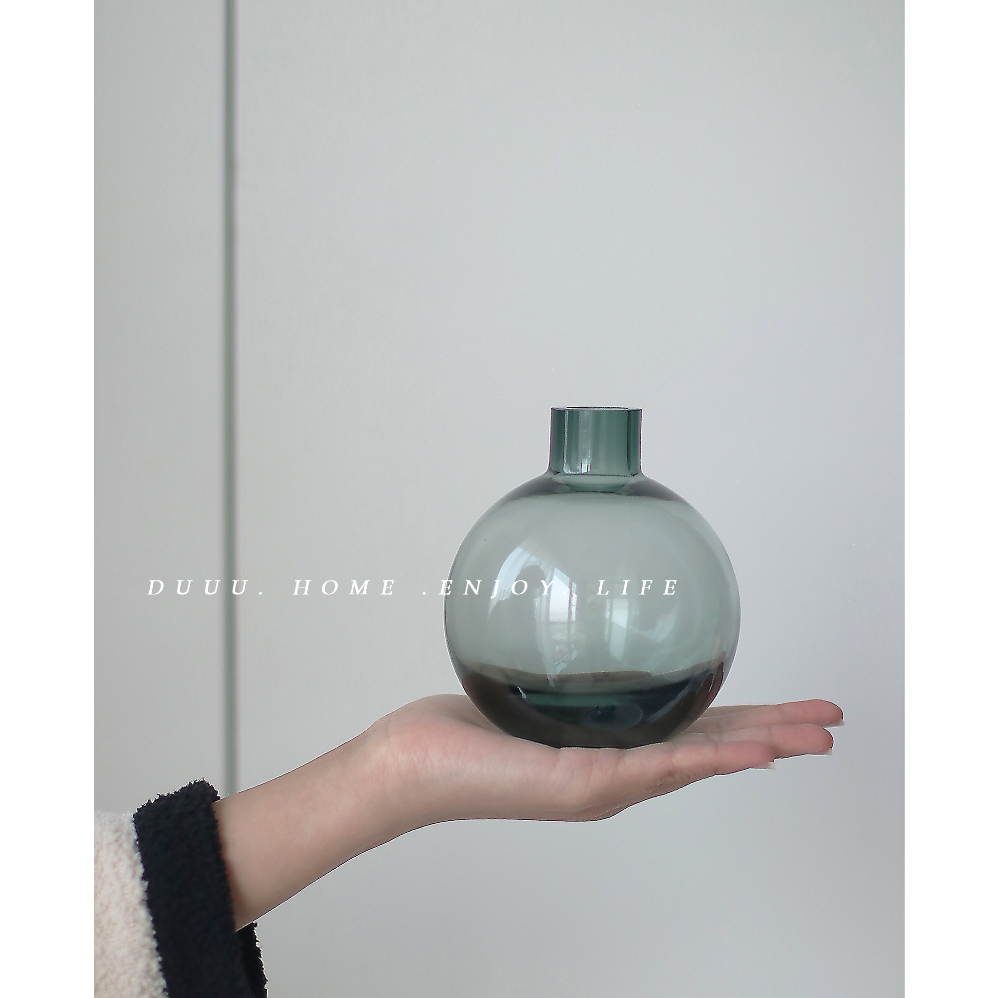 Nordic simple creative bubble glass vase round dark green fresh transparent hydroponic rose single flower arrangement