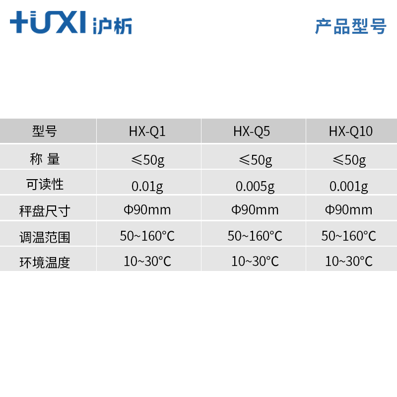 HX-Q1 (measuring range ≤ 5 0 g 0 01g 01g) HX-Q5 (measuring range ≤ 5 0 g accuracy 0005g) HX-Q10 (measuring range ≤ 5 0 g accuracy 0
