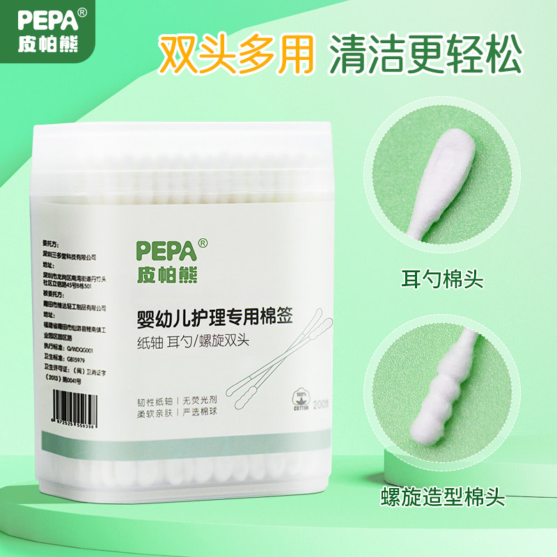 PEPA Pipa Bear Baby Spiral Rod Spiral Double Head of Ear Nose Baby Clean Cotton Baby Ear-nose Child Clean Cotton Baby Ear-Spoon Head