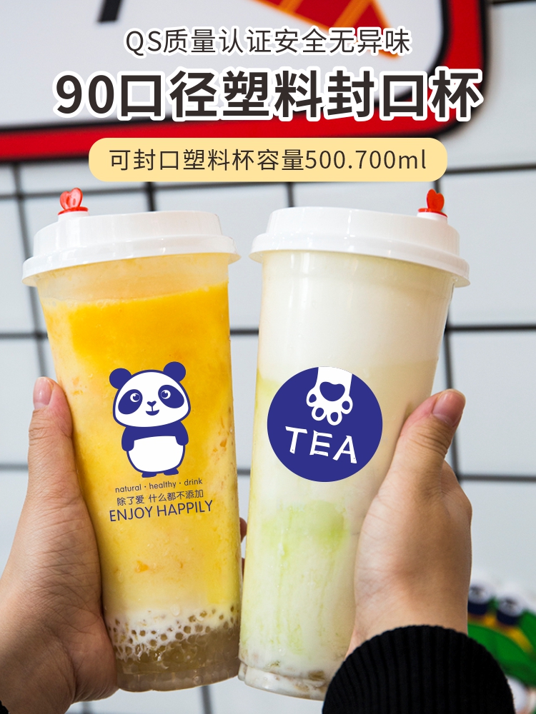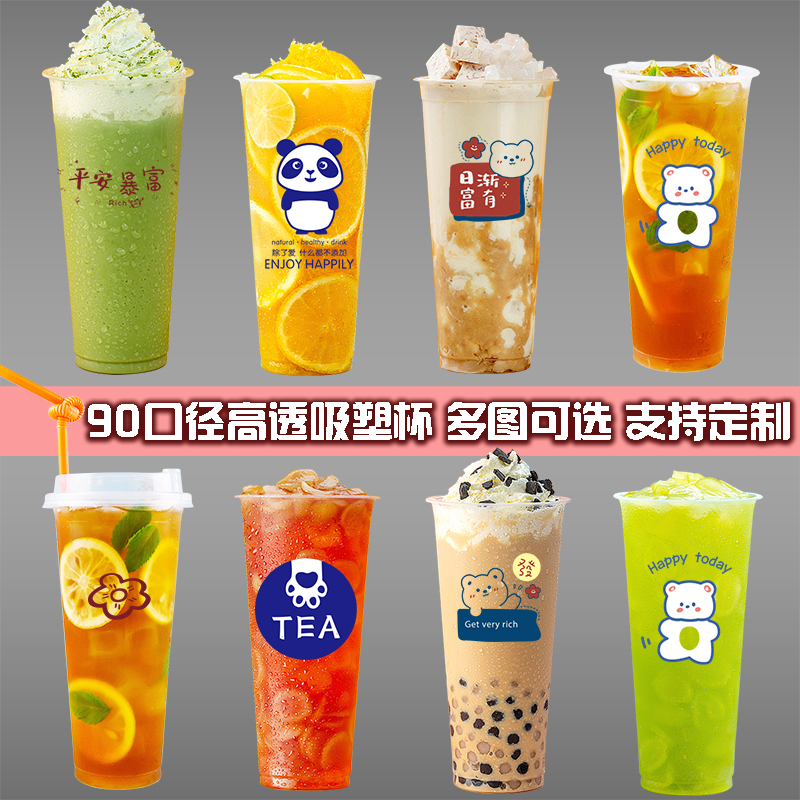 90 caliber disposable plastic net red milk tea cup thickened 500 700ml commercial custom cup 1000 pieces