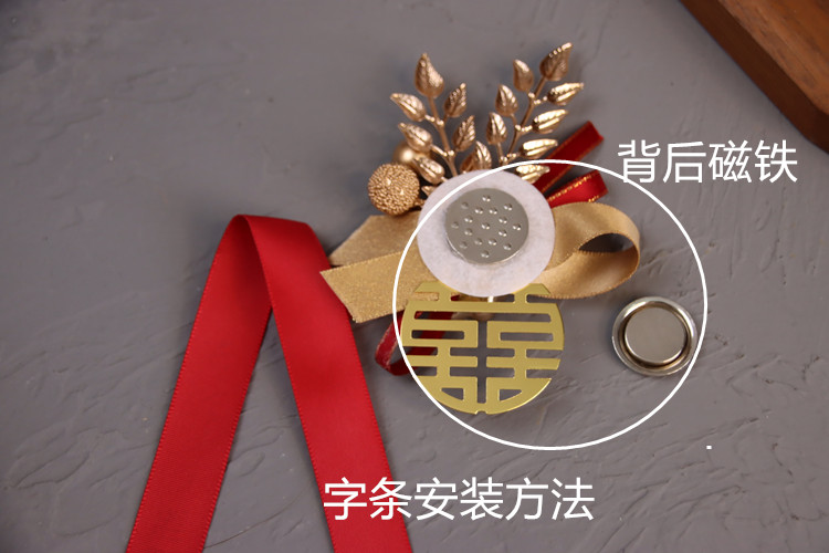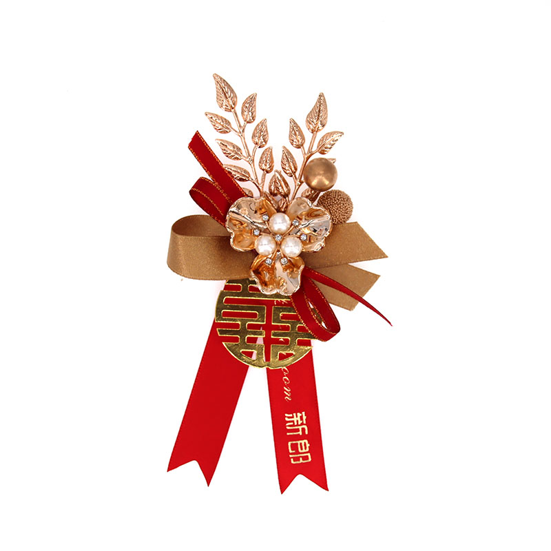 2021 new magnet Chinese style double happiness champagne leaves Bride and groom wedding lapel flower ceremony wedding corsage