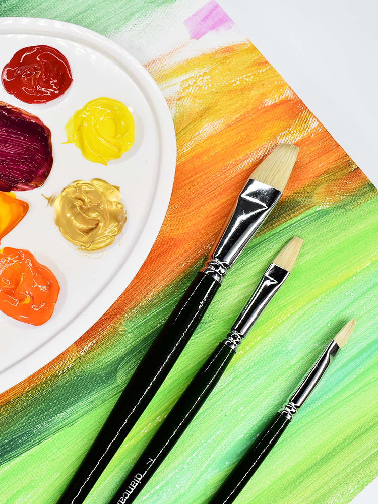 Qiancai Le 830 series bristle flat head fishtail type brush watercolor gouache oil painting acrylic paint brush single art student special row brush single and double set