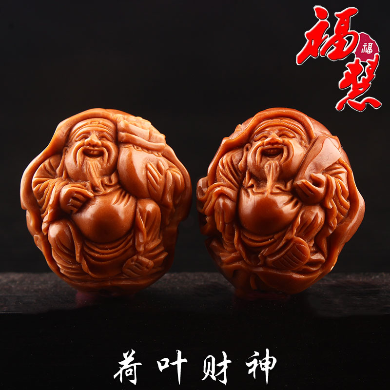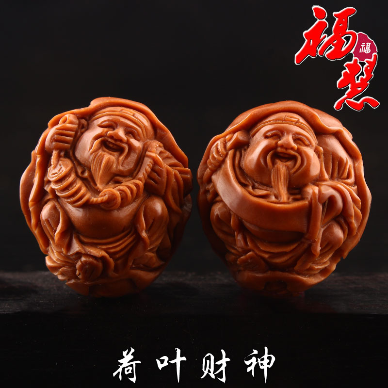2 1 large seed lotus leaf chaetheon olives olive nuclear hand string handmade engraving Eight major financial gods Wen playing nuclear sculptures handlebar pieces