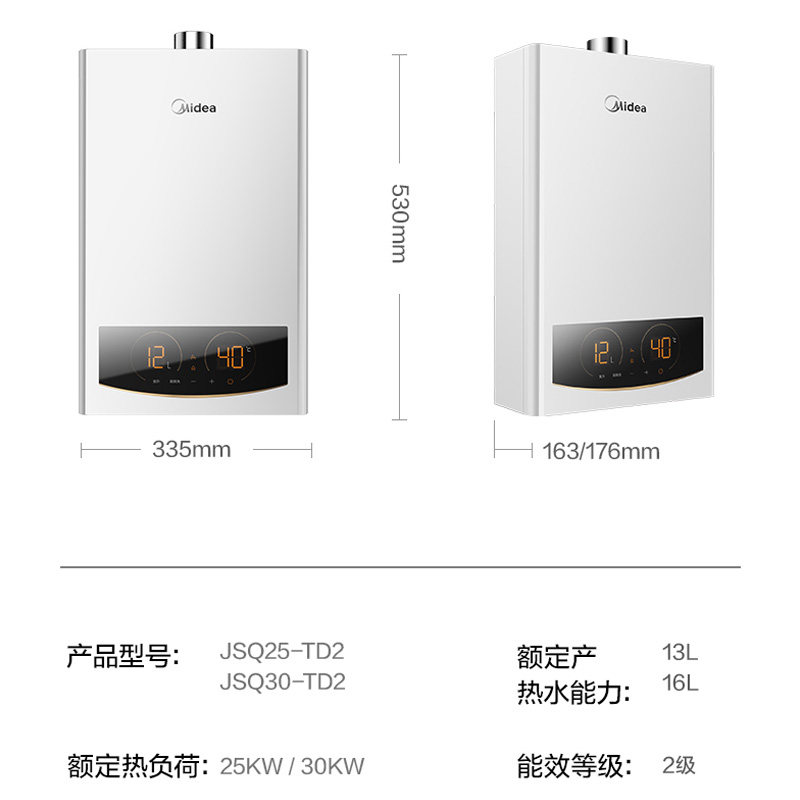 Midea gas water heater household gas 13 liters intelligent variable frequency constant temperature strong row instantaneous heat bath TD2