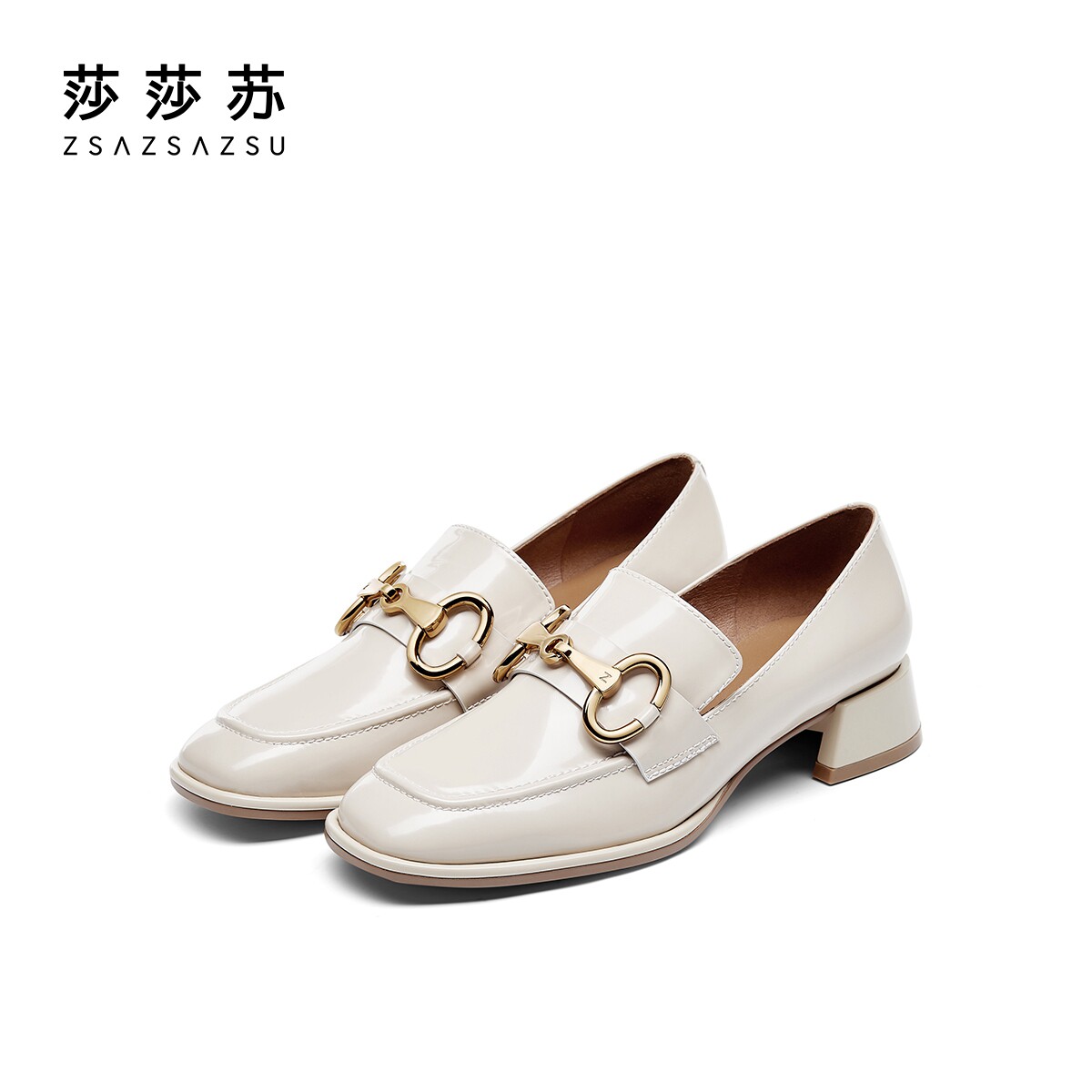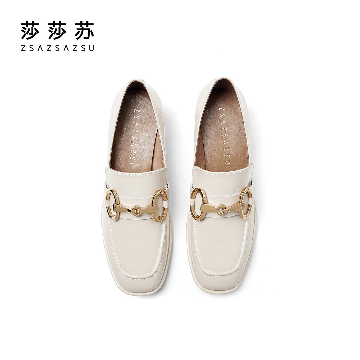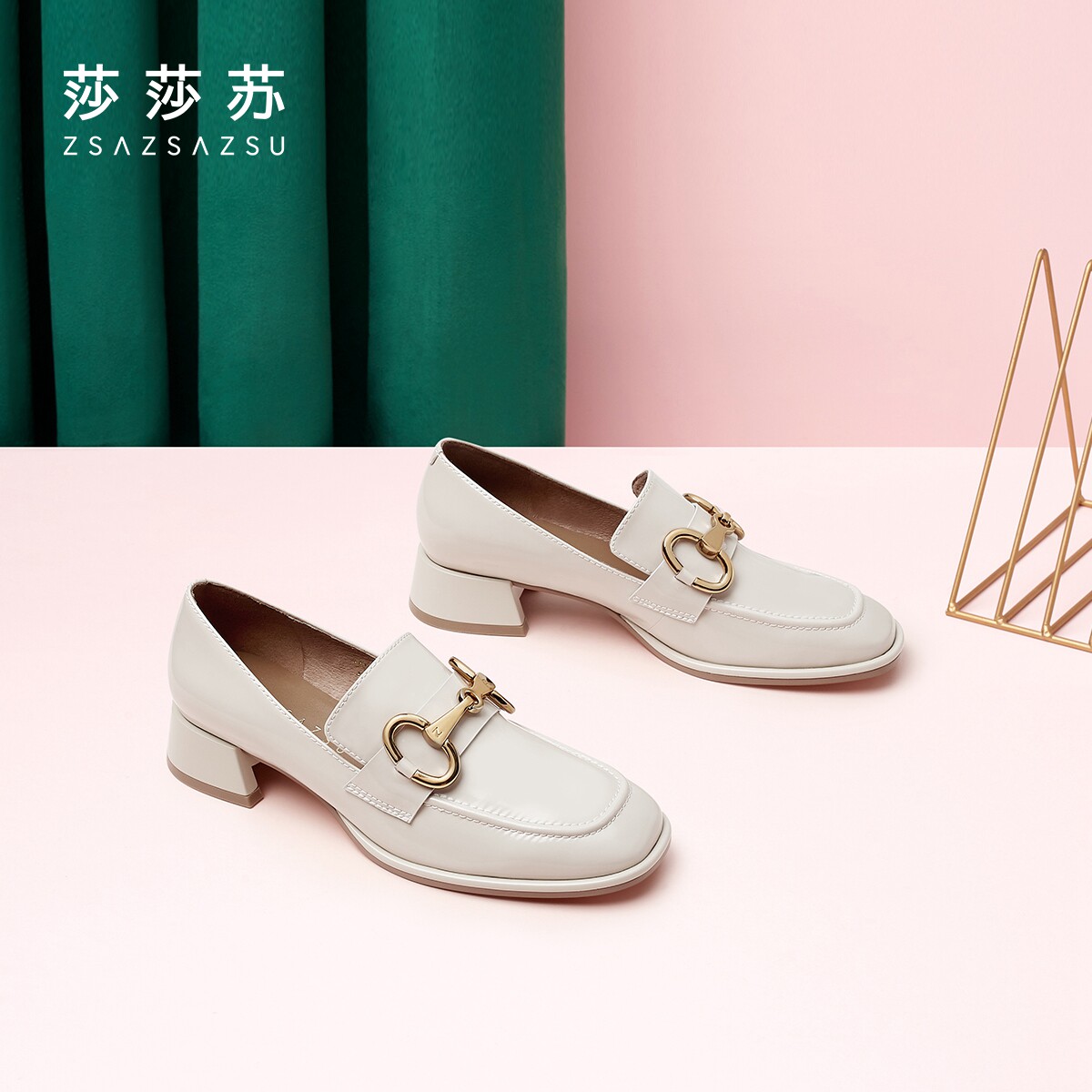 Sashashu Spring Summer 100 Hitch Thick Heel Single Shoe Woman Deep Mouth Horse button Cream Lefu Shoes with Lefoe Shoe Girl