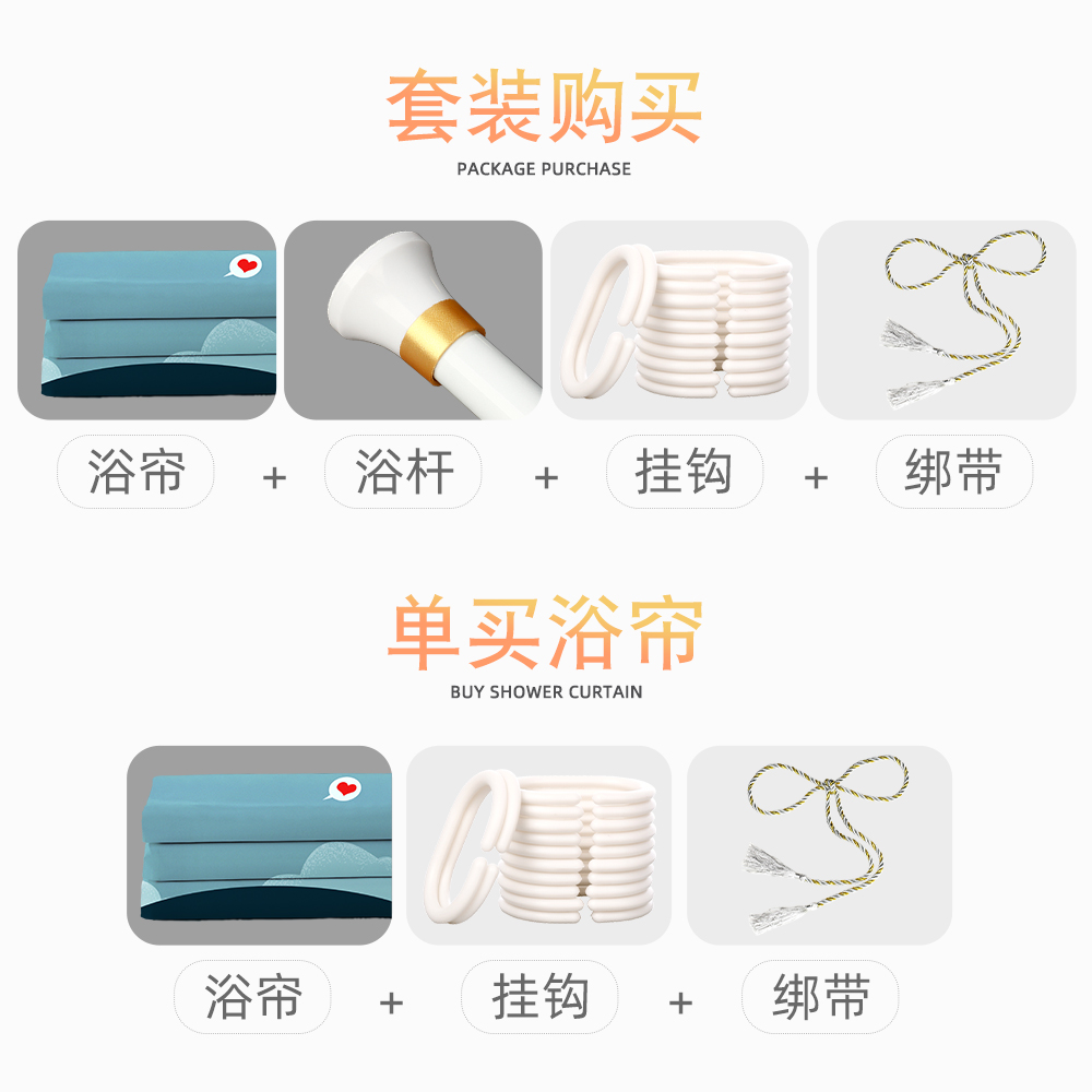Bathroom non-perforated waterproof mildew cloth Shower kit Powder room curtain Room door curtain Partition window thickened shower curtain
