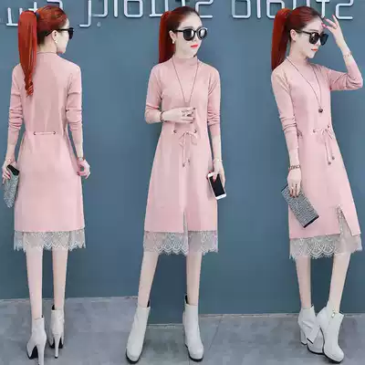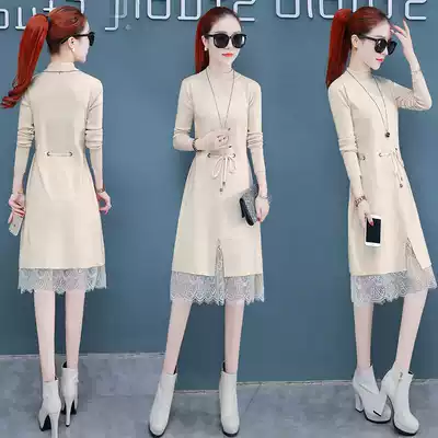 Knitted dress long version of women's interior 2021 new autumn and winter coat sweater Joker base skirt