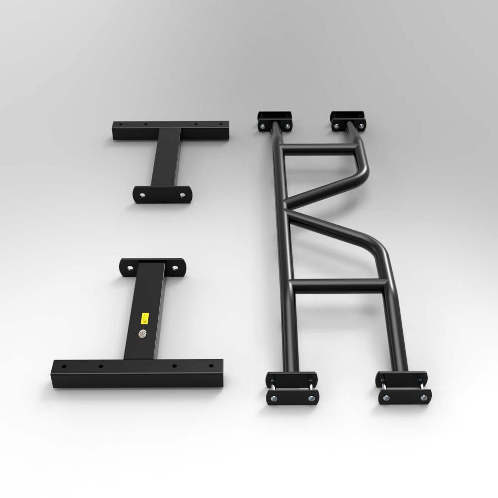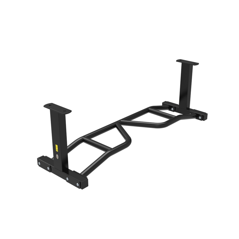 Multi-position double-bar stand for home fitness equipment installed under the upper single double-lever beam by the mounting guide body of the East International suspended ceiling