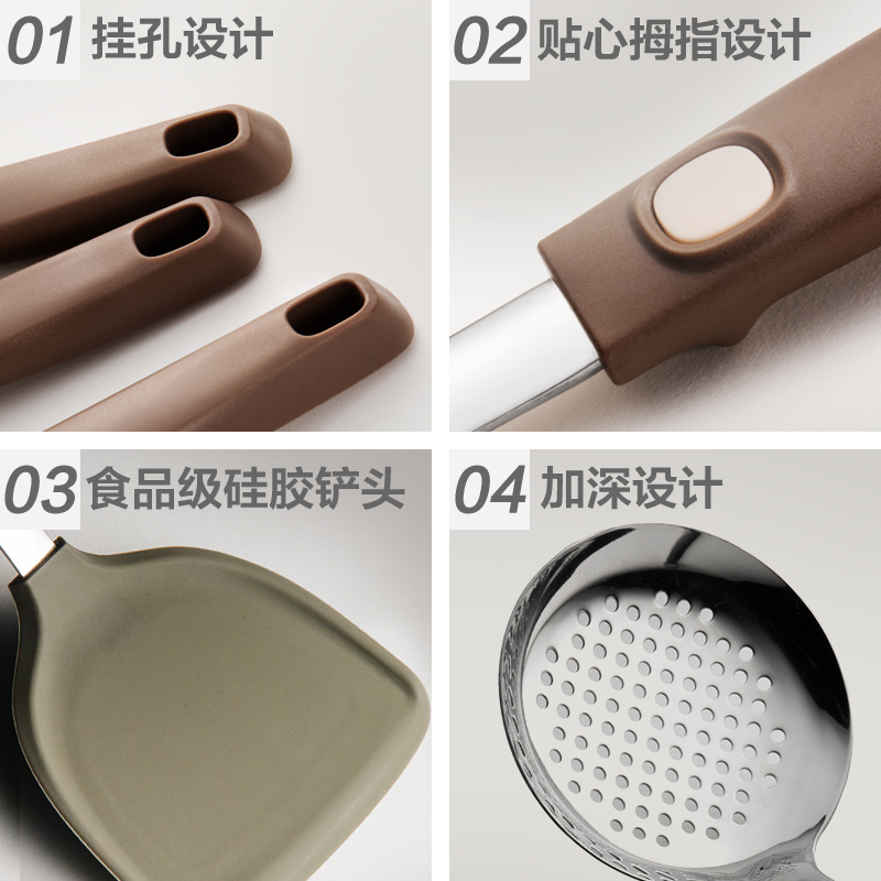 Chinese shovel Xin series soup spoon Xin series leaking spoon Xin series of protective pan spade Xin series of five sets of seven pieces