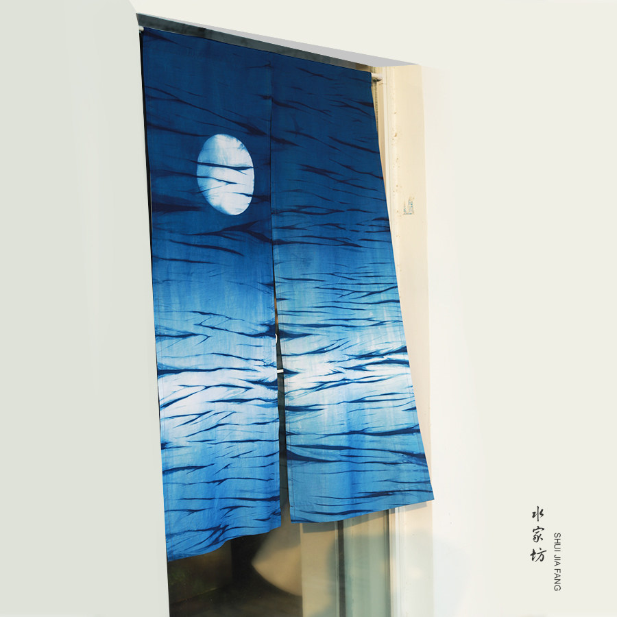 Water Home Workshop Blue Dye Door Curtain Handcrafted Grass Wood Dyeing and Dyed Chinese Day Style Curtain for the folk hangover of the Blast Moonlight
