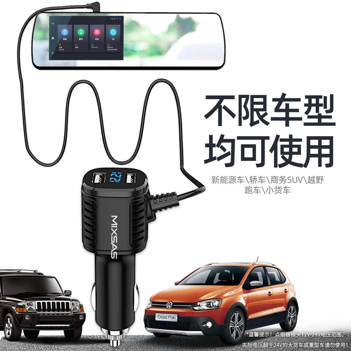 Driving recorder power cord dual USB interface car charger multi-function GPS charger cigarette lighter plug cable