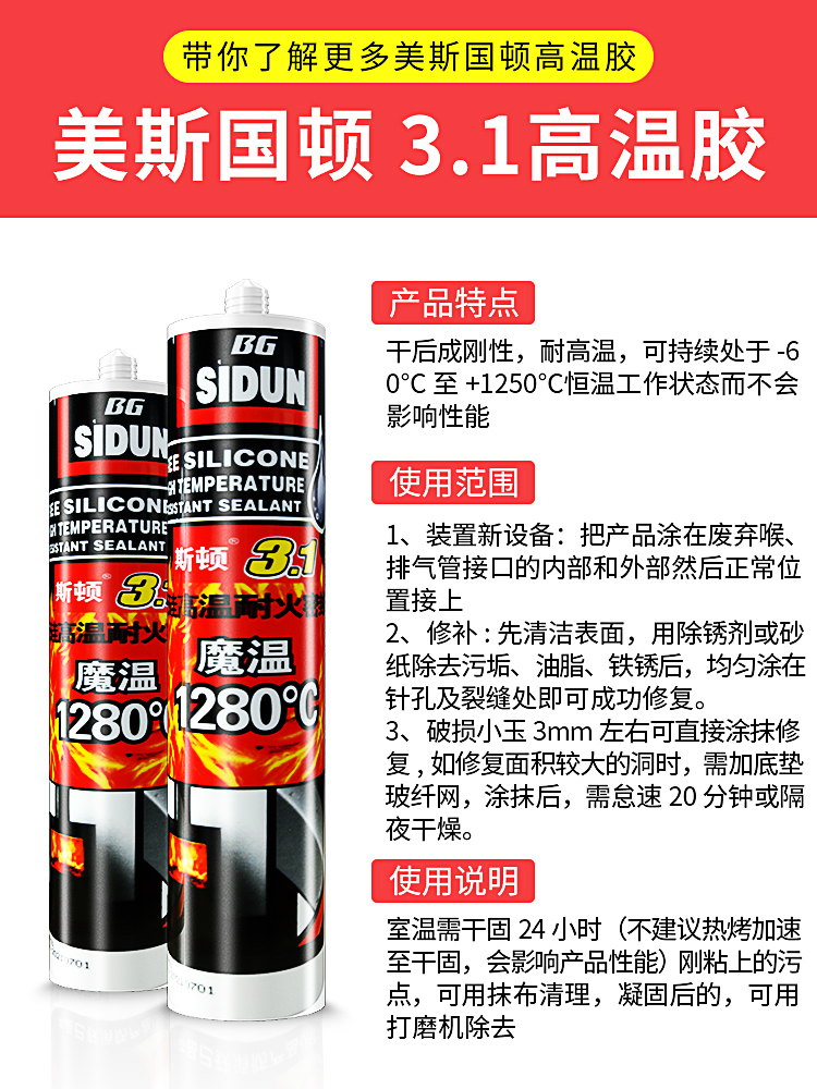 High temperature resistant 1400 fireproof sealant 1200-degree waterproof glass glue 1000-degree boiler leak-resistant refractory rubber