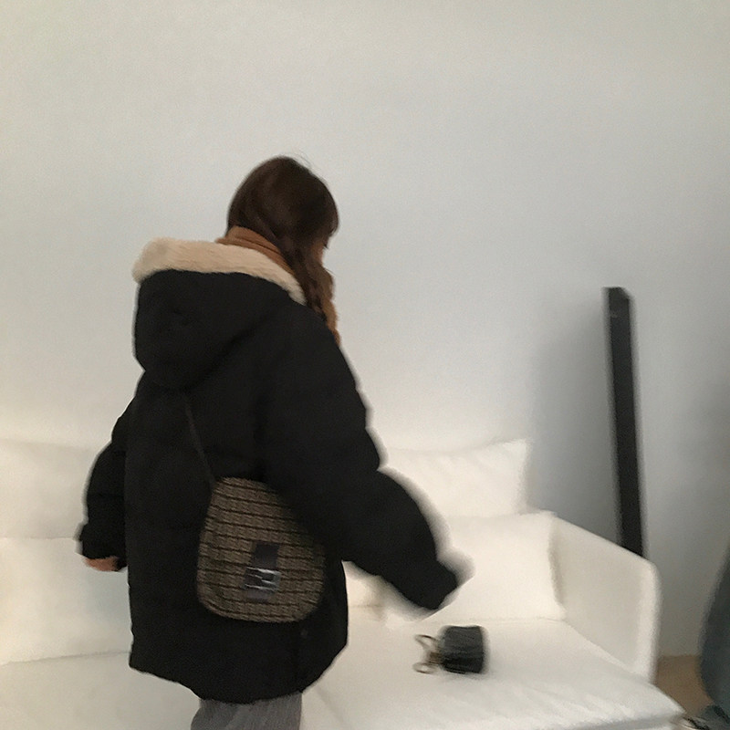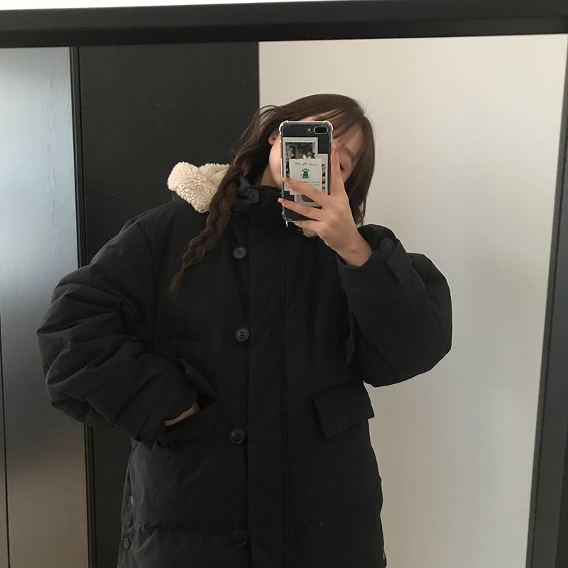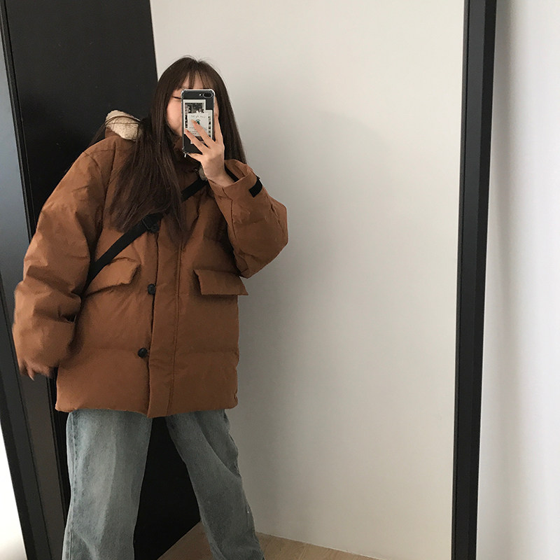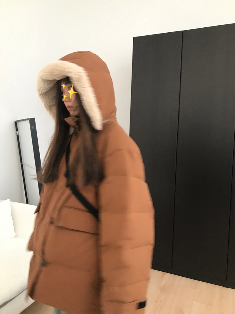 King little girl's shop lamb wool collar down jacket 2022 years winter new caramel black light and thin loose fashion jacket