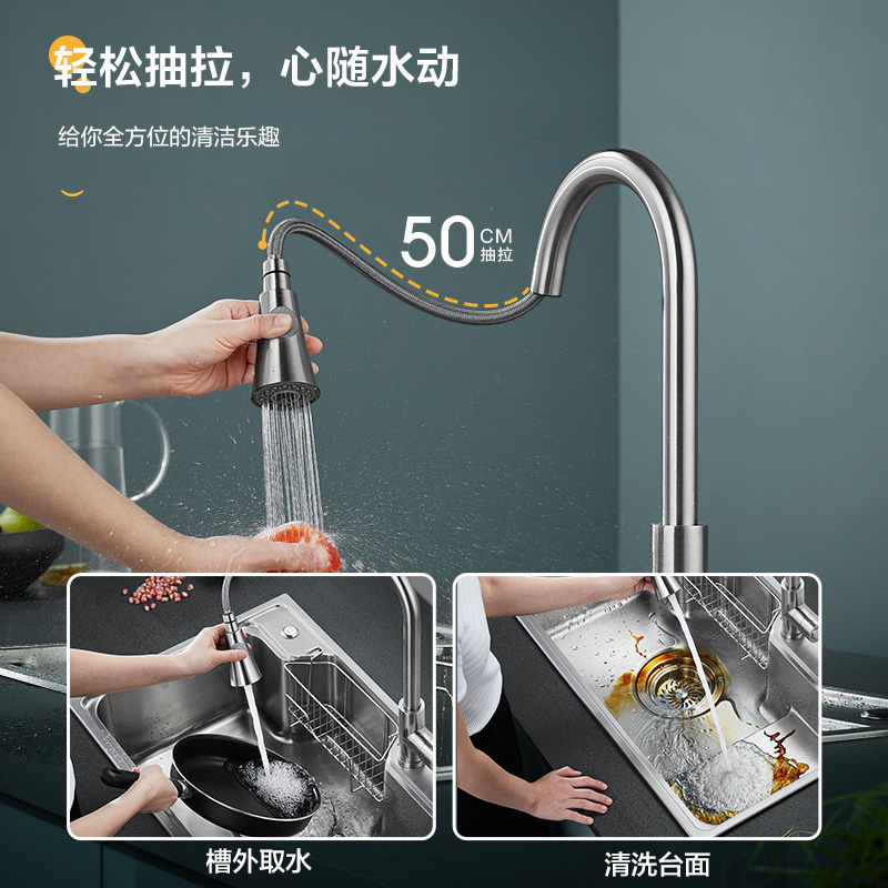 Wrigley bathroom kitchen faucet hot and cold 304 stainless steel wash basin dishwashing sink laundry sink pull faucet