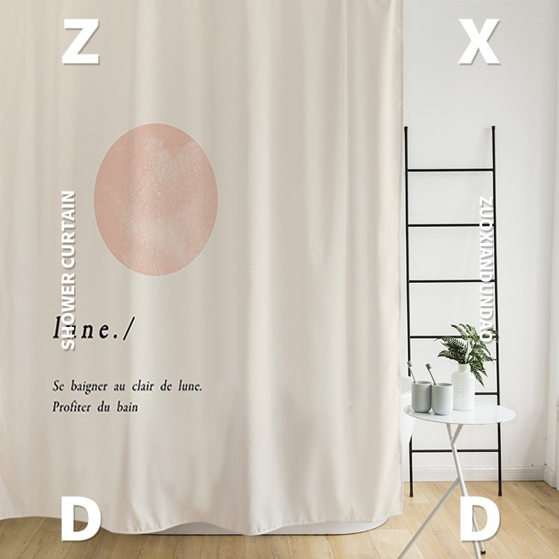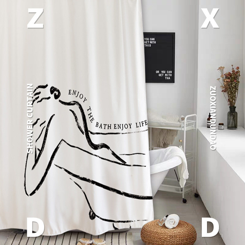 Left Ham Dun Road Line Series Bathroom Waterproof Shower Curtain Invisible Set Free Punching Partition Curtain Tarpaulin High Grade