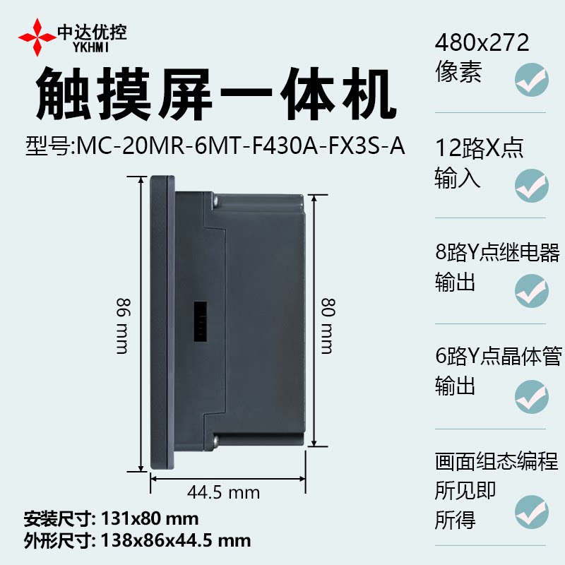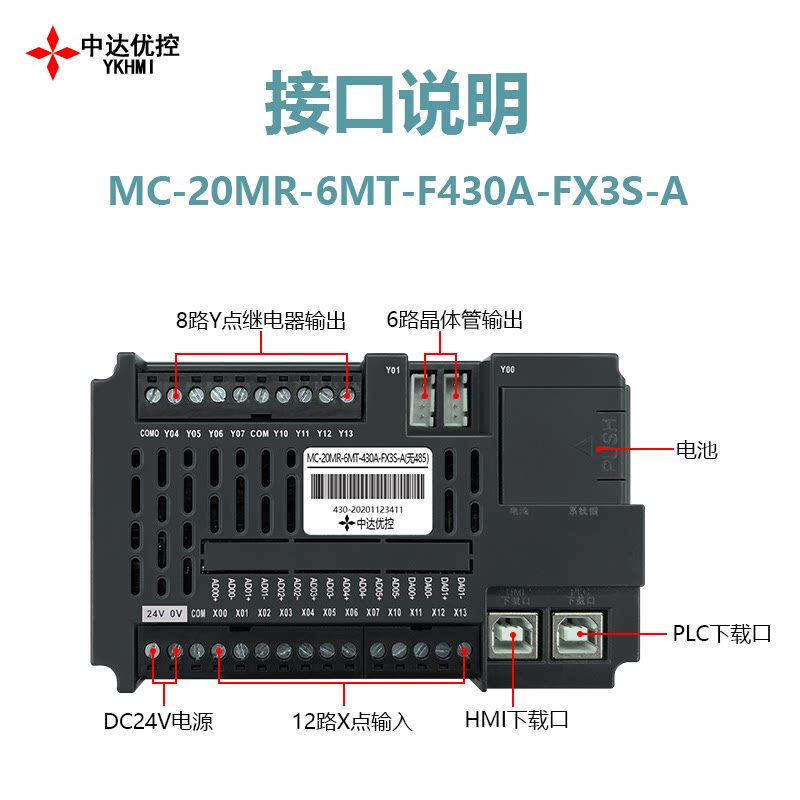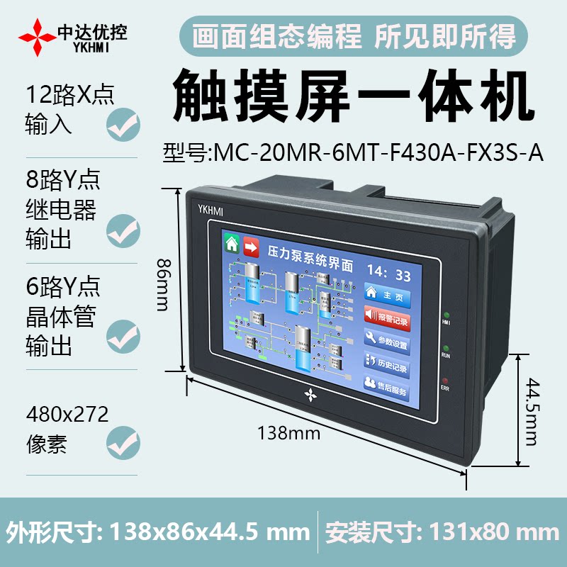 Zhongda excellent control touch screen PLC all-in-one machine MC-20MR-6MT-F430A-F3-A manufacturer download line belt 485